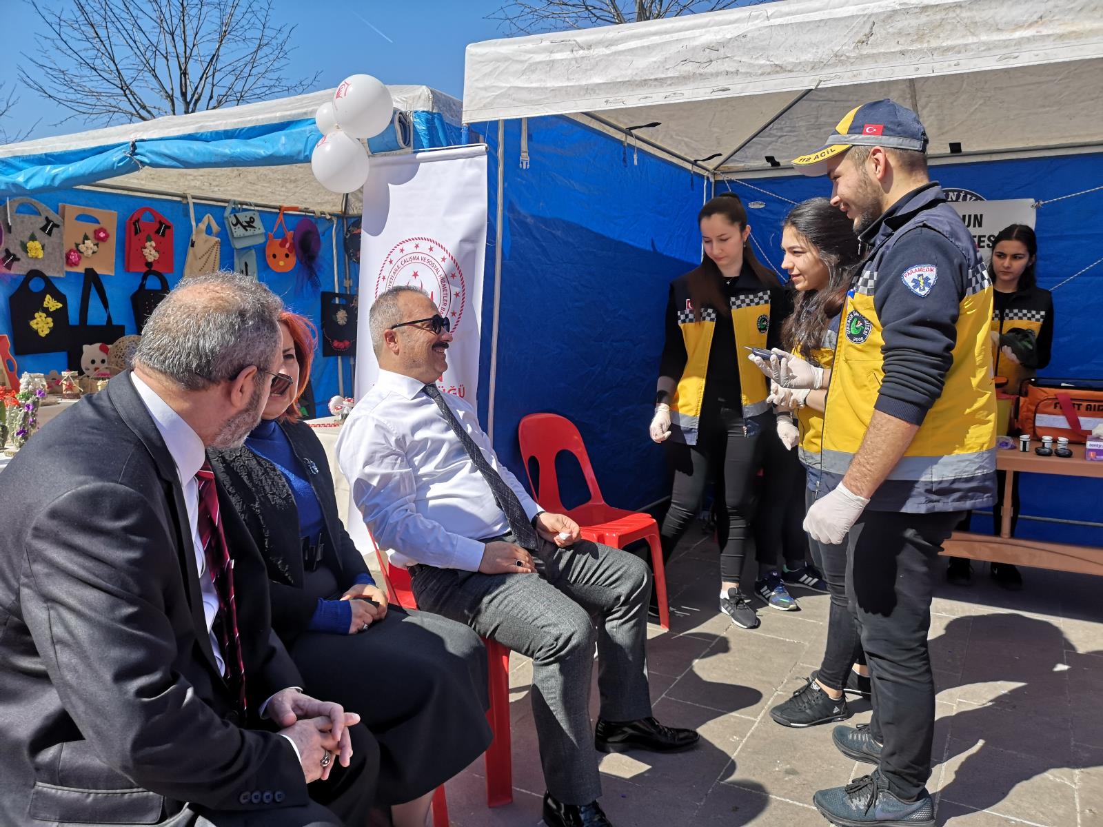 Aile ve Sosyal Politikalar İl Müdürlüğü ile birlikte düzenlenen etkinlik kapsamında Sağlık Hizmetleri MYO Yaşlı Bakım Programında Öğr. Gör. Ayça Toprak danışmanlığında, Atatürk Meydanında kurulan sağlık çadırında görev alan İlk ve Acil Yardım Programı 2. sınıf 2. öğretim öğrencileri, çadırı ziyaret eden vatandaşların tansiyonlarını ve kan şekeri değerlerini ölçtüler.