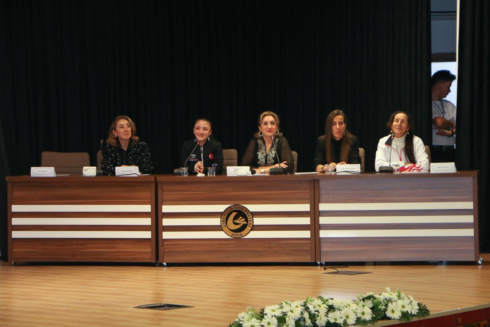 Organizasyon Komitesi Başkanı Prof. Dr. Aysun Türkmen'in yönettiği "Sporda Kadın" temalı bu oturumda panelist olarak, milli sporcularımız, Dünya Halter Şampiyonu Cansu Bektaş, kadınlarda ilk olimpiyat madalyasının sahibi Hülya Şenyurt, FİFA kokartlı hakem Mürvet Yavuztürk ile Tekvando Babaannesi lakaplı Avrupa Şampiyonu Sevgican Yalçın yer aldılar.