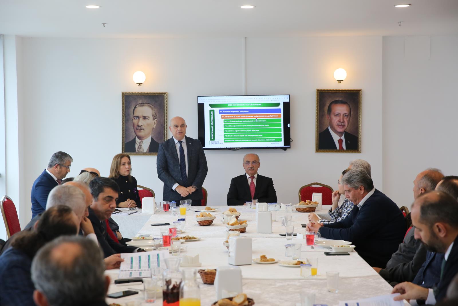 Rektörümüz Sayın Prof. Dr. Yılmaz Can genel bir perspektif çizerek başladığı konuşmasında, planlamanın son derece önemli olduğunu, plansız yapılan işlerin kadük kaldığını, Üniversitemizde bundan önce de 3 defa stratejik plan uygulandığını, 2020-2024 Stratejik Planı kapsamında önemli iyileştirmelerin sağlandığını, bu planlamalar sayesinde üniversitemizde stratejik yönetim ve kalite anlayışının daha fazla yerleştiğini, Üniversitemizin dördüncü Stratejik Planının tamamlandığını, bu planın On İkinci Kalkınma Planı, Orta Vadeli Program ve YÖK Stratejik Planı gibi üst politika belgelerine uyumlu hazırlandığını, tüm faaliyetlerde ülkenin kalkınma planlarına uyuma dikkat etmemiz gerektiğini, bugün burada stratejik plan hakkında kısa bir sunumunun yapıldığını ve daha geniş bir tanıtım sunumunun Senatoda gerçekleştirileceğini, Planda belirlenen stratejik amaç ve hedeflerin yanı sıra bu hedeflerin ölçülmesi için performans göstergelerin belirlendiğini, bundan sonraki süreçlerde planın titizlikle uygulanması gerektiğini, birim amirlerinin ve süreçlerde görevli birim yetkililerinin bu Stratejik Planının daima elinin altında olması gerektiğini, karar süreçlerinde Planı inceleyerek faaliyetlerini Plana uygun şekilde gerçekleştirmeleri gerektiğini, tüm akademik ve idari birimlerin stratejik amaç ve hedeflere ulaşmak için ciddi eylem planları yapmalarının önemli olduğunu ve belirlenen faaliyetleri özenle uygulamaları gerektiğini, Stratejik Planın kalite çalışmalarının da önemli ayaklarından birisi olduğunu, yakın tarihte Yükseköğretim Kalite Kurulu (YÖKAK) tarafından Kurumsal Akreditasyona gireceğimizi, bu stratejik planların kalite süreçleri için de son derece önemli olduğunu, stratejik plan çalışmalarında emeği olan, değerli katkılar sunan tüm akademik ve idari personelimize teşekkür ettiğini, komisyonlarda görev alan her arkadaşımızın ismine hazırlanmış teşekkür belgelerinin kağıt israfına yol açmayacak şekilde EBYS üzerinden gönderildiğini, katkı ve katılımlardan dolayı teşekkür ettiğini vurguladı.