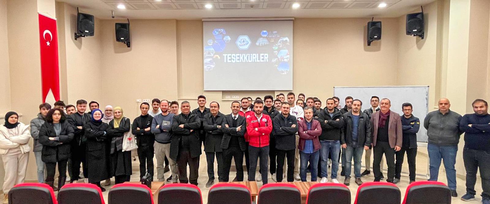 Üniversitemiz Mühendislik Fakültesi Harezmi amfisinde gercekleştirilen sunuma Rektör Yardımcımız Prof. Dr. Hüseyin Şahin'in yanı sıra akademik personelimiz ve öğrencilerimiz katıldı. Fatih Yıldırım, milli teknoloji hamlesinin önemini vurgulayarak, kurum olarak yürüttükleri projeler hakkında bilgi verdi. Ayrıca, TEKNOFEST 2024 özeline ayrı bir başlık açarak etkinliğe nasıl başvurulur, yarışmalar ve içerikleri hakkında öğrencilerimizi bilgilendirdi.