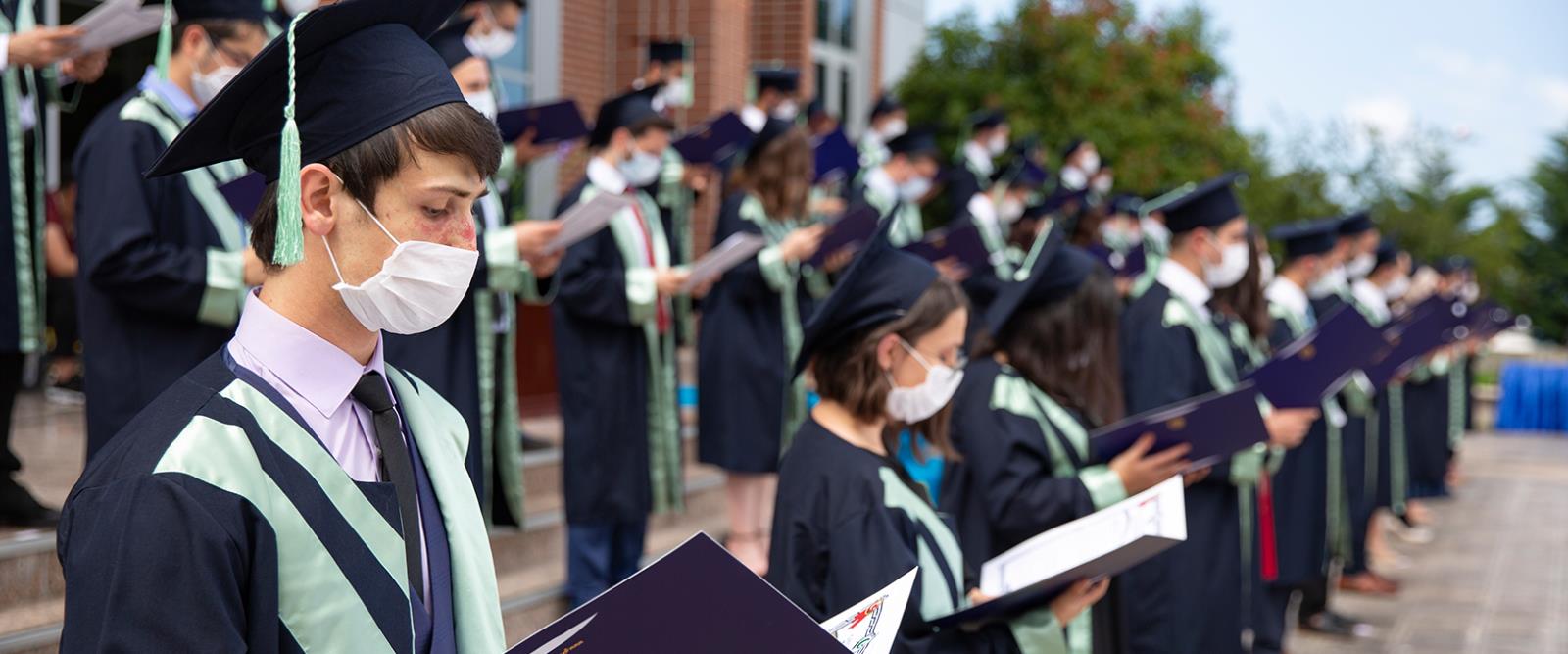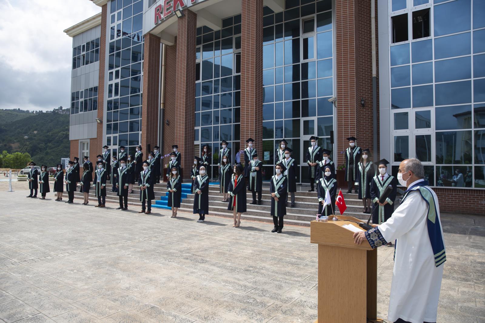 Salgın sebebiyle, sosyal mesafe, hijyen ve maske gibi önemli kurallara dikkat edilerek icra edilen mezuniyet törenine Üniversitemiz Rektörü Prof.Dr. Yılmaz CAN da katıldı.