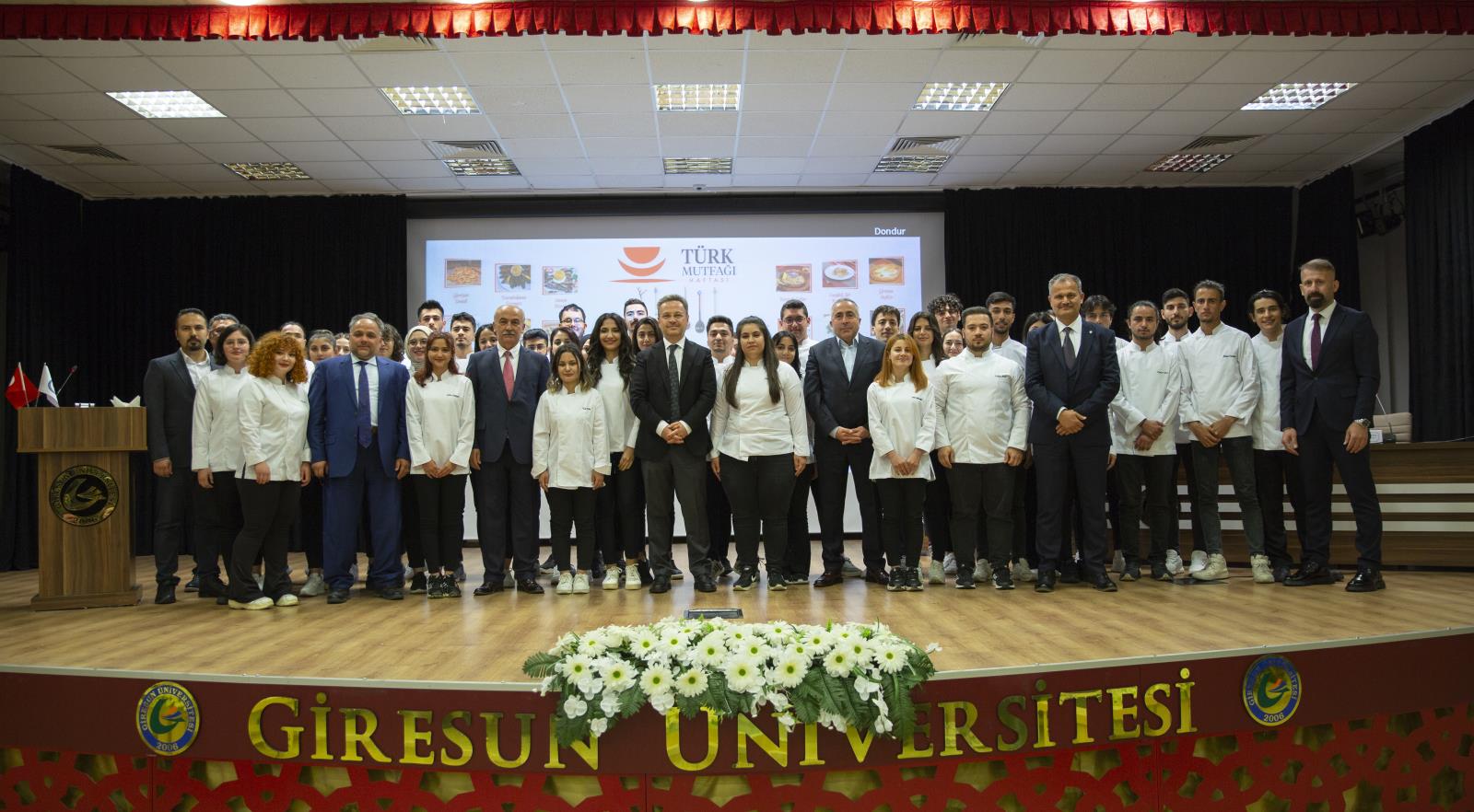Panelin ardından; Giresun Üniversitesi Turizm Fakültesi Gastronomi ve Mutfak Sanatları Bölümü Öğrencileri için “Mutfak Sanatları Önlük Giyme” töreni düzenlendi. Rektörümüz Prof. Dr. Yılmaz CAN, Giresun Valisi Enver ÜNLÜ ve diğer protokol üyeleri tarafından öğrencilere önlükleri giydirildikten sonra, Rektörlük binası önünde kurulan stantlarda Giresun’un yerel lezzetleri davetlilere ikram edildi.