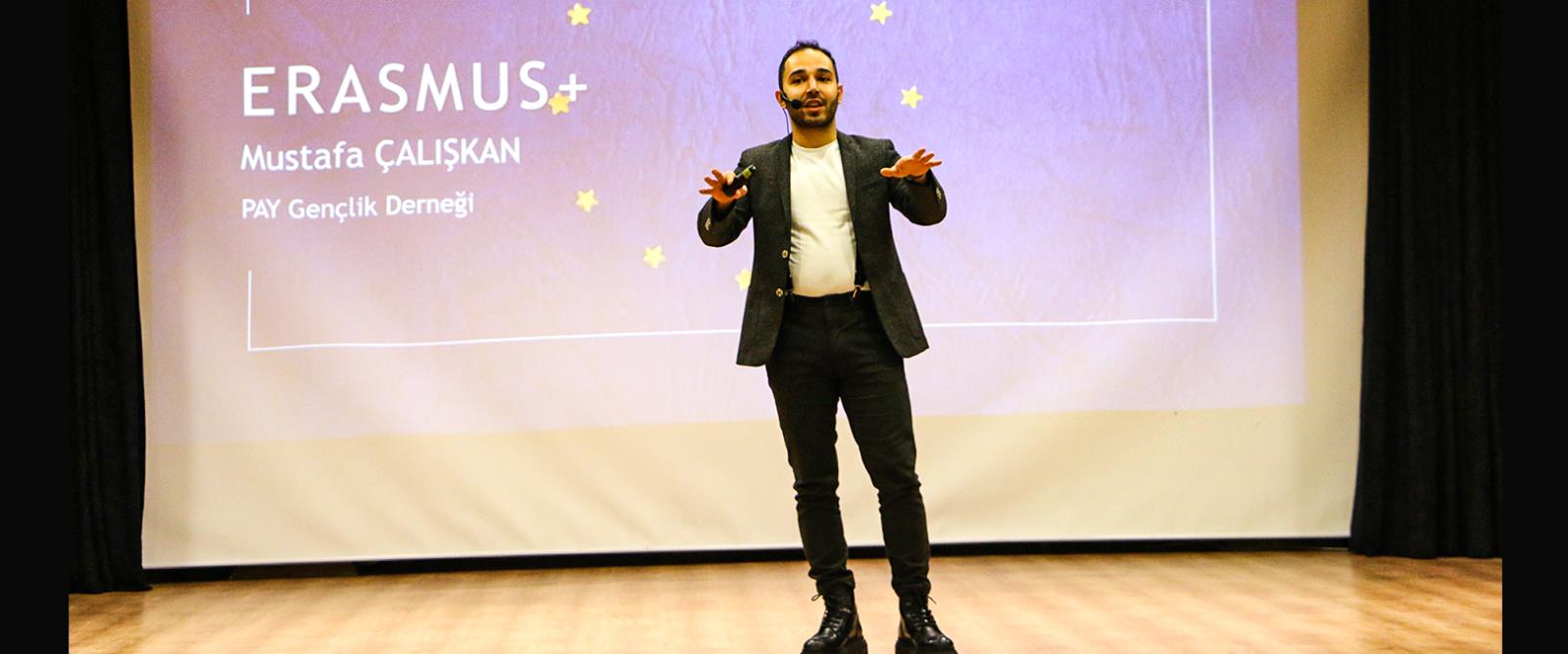 Güre Yerleşkesi Şehit Ömer Halisdemir konferans salonunda üniversite öğrencilerine yönelik gerçekleştirdiği sunumda Ücretsiz Yurt Dışı Fırsatları ve Avrupa Birliği Gençlik Projelerinden bahsetti. Çalışkan'ın sunumu üniversite öğrencileri tarafından yoğun ilgiyle karşılandı.
