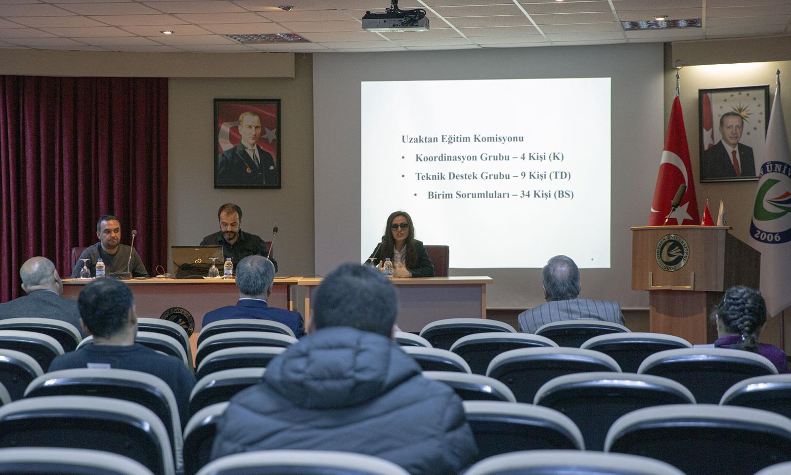 Üniversitemiz Uzaktan Eğitim Merkezi Müdürlüğü’nün koordinatörlüğünde yürütülecek çalışmalar için öncelikle bir hazırlık komisyonu oluşturuldu. Rektör Yardımcısı Prof.Dr. Güven ÖZDEM’in başkanlığında çalışmalara başlayan komisyon, bir taraftan sistemin alt yapısını iyileştirmek için yoğun bir çalışma içine girerken, diğer taraftan içerik ve sistem yönetimi alanında da önemli çalışmalarını tamamladı.