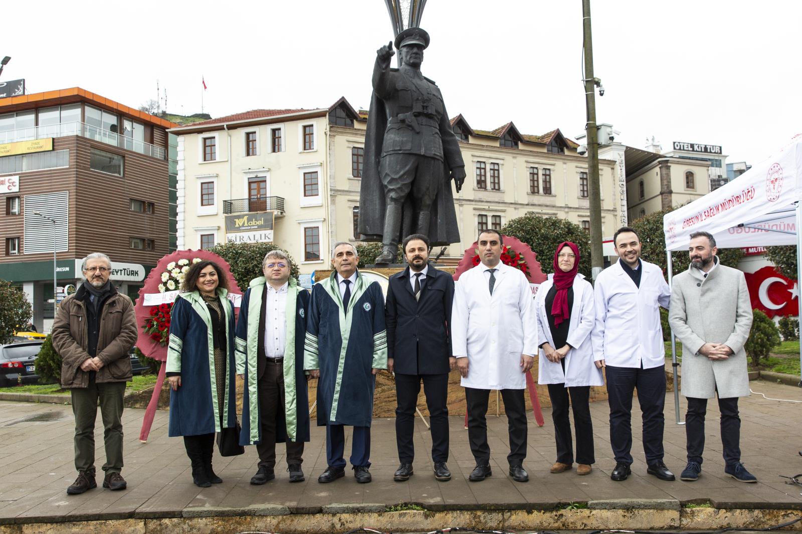 14 Mart Tıp Bayramı dolayısıyla düzenlenen çelenk koyma törenine, Dekan Ağar'ın yanı sıra, İl Sağlık Müdürü Doç.Dr. Muhammet Bulut, Tabip Odası Başkanı Doç.Dr. Erhan Demirelli de katıldılar.