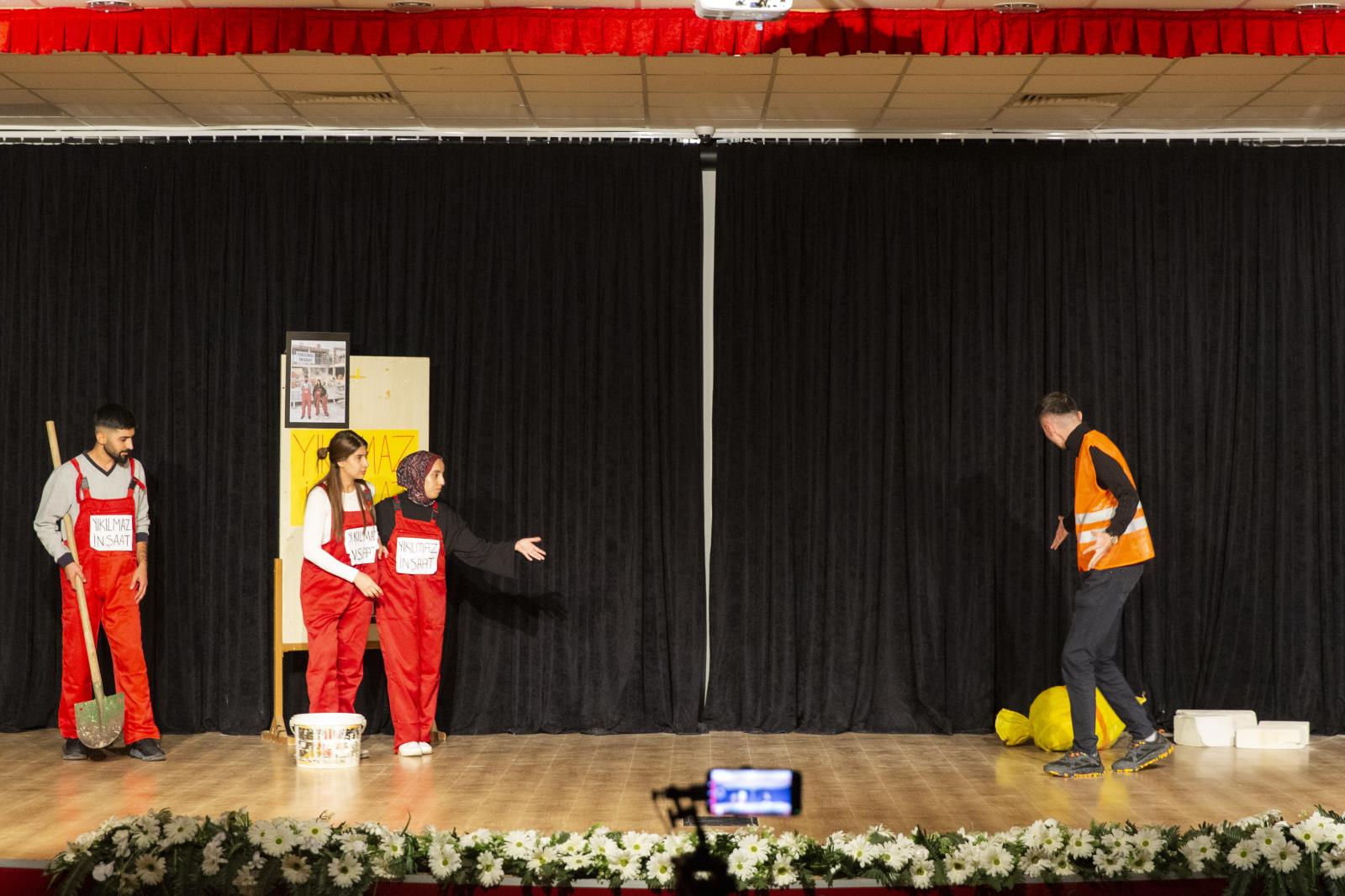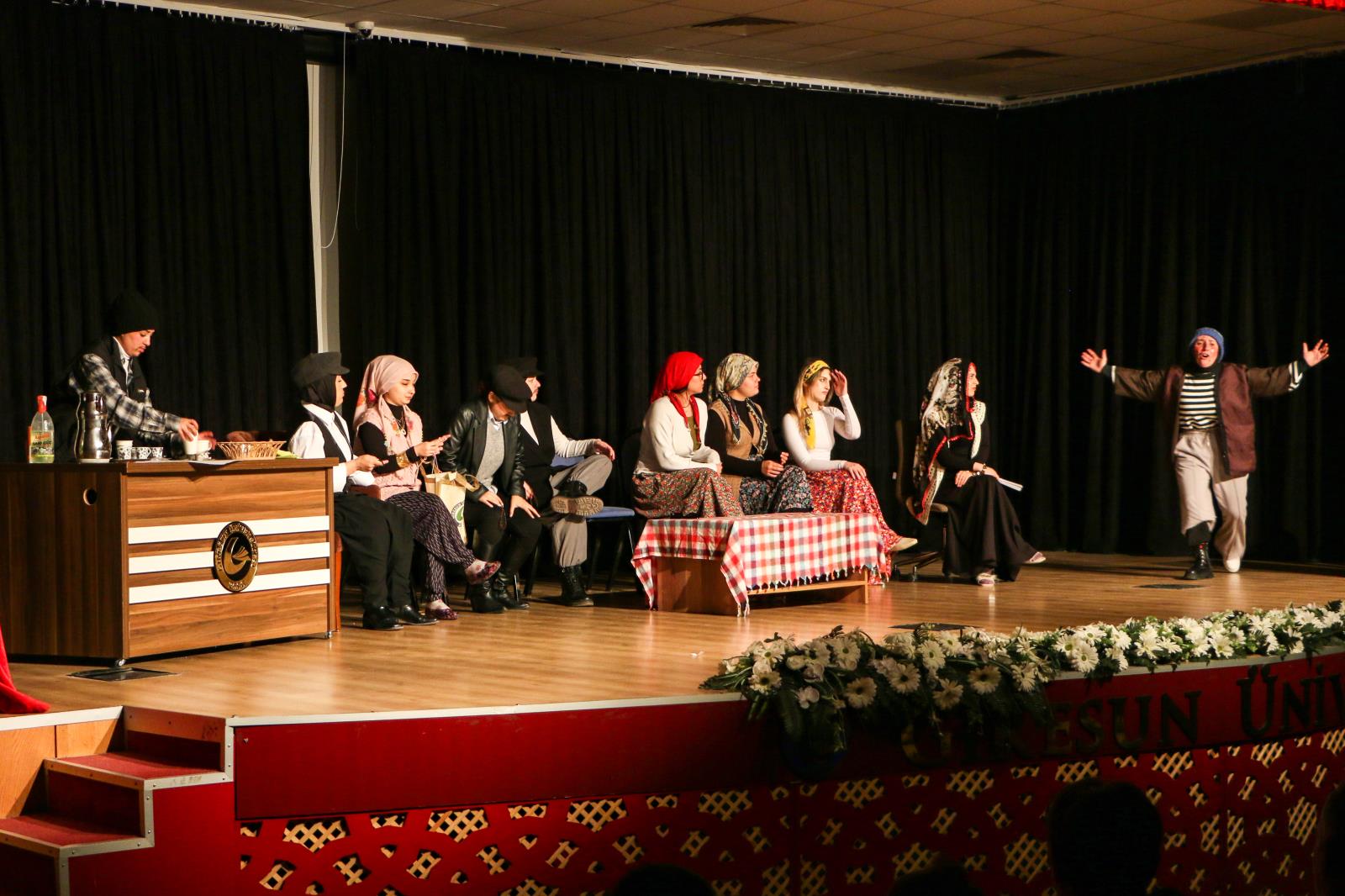 Eğitim Fakültesi akademisyenlerinden Dr. Öğr. Üyesi Dursun ŞAHİN yönetiminde hazırlıklarını yapan öğrencilerinin sahneledikleri; “Otoyolda Piknik”, “Depremzâdeler Mahallesi”, “Pusulamı Ayarlar mısınız?” ve “Komşu Köyün Delisi” isimli oyunlar seyirciden büyük beğeni topladı.