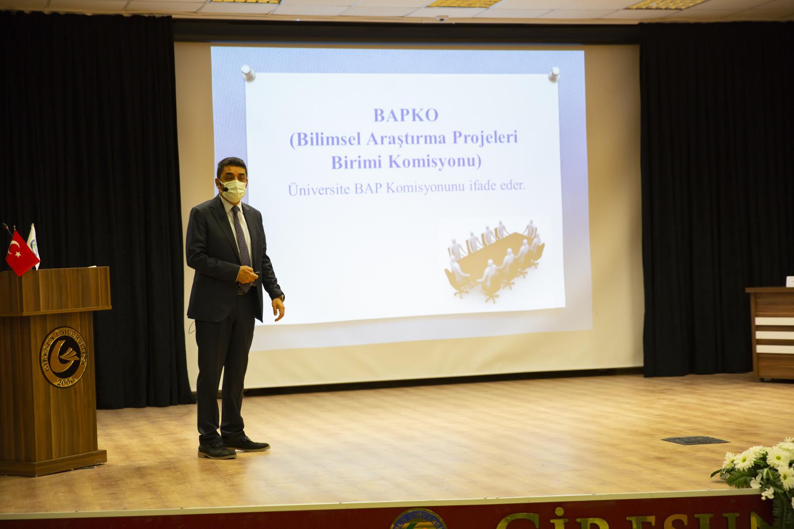 BAP Koordinasyon Birimi Koordinatörü Prof. Dr. Yalçın TEPE’nin BAP biriminin tanıtımı ve genel işleyişi ile ilgili sunumuyla başlayan programa; Rektörümüz Prof. Dr. Yılmaz CAN ve Rektör Yardımcısı Prof. Dr. Hüseyin PEKER’in yanı sıra Üniversitemiz akademik ve idari personeli katıldı.
