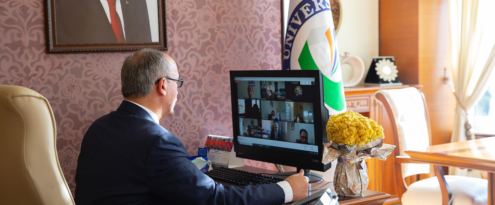 Online toplantıya Rektörümüzün yanında, Rektör Yardımcılarımız Prof.Dr. Güven Özdem, Prof.Dr. Hüseyin Peker, Genel Sekreter Ahmet Tevfik Korkmaz ile birlikte, Daire Başkanları, Fakülte/MYO/YO/Enstitü Sekreterleri, kalite elçileri ve veri giriş sorumları katıldı.