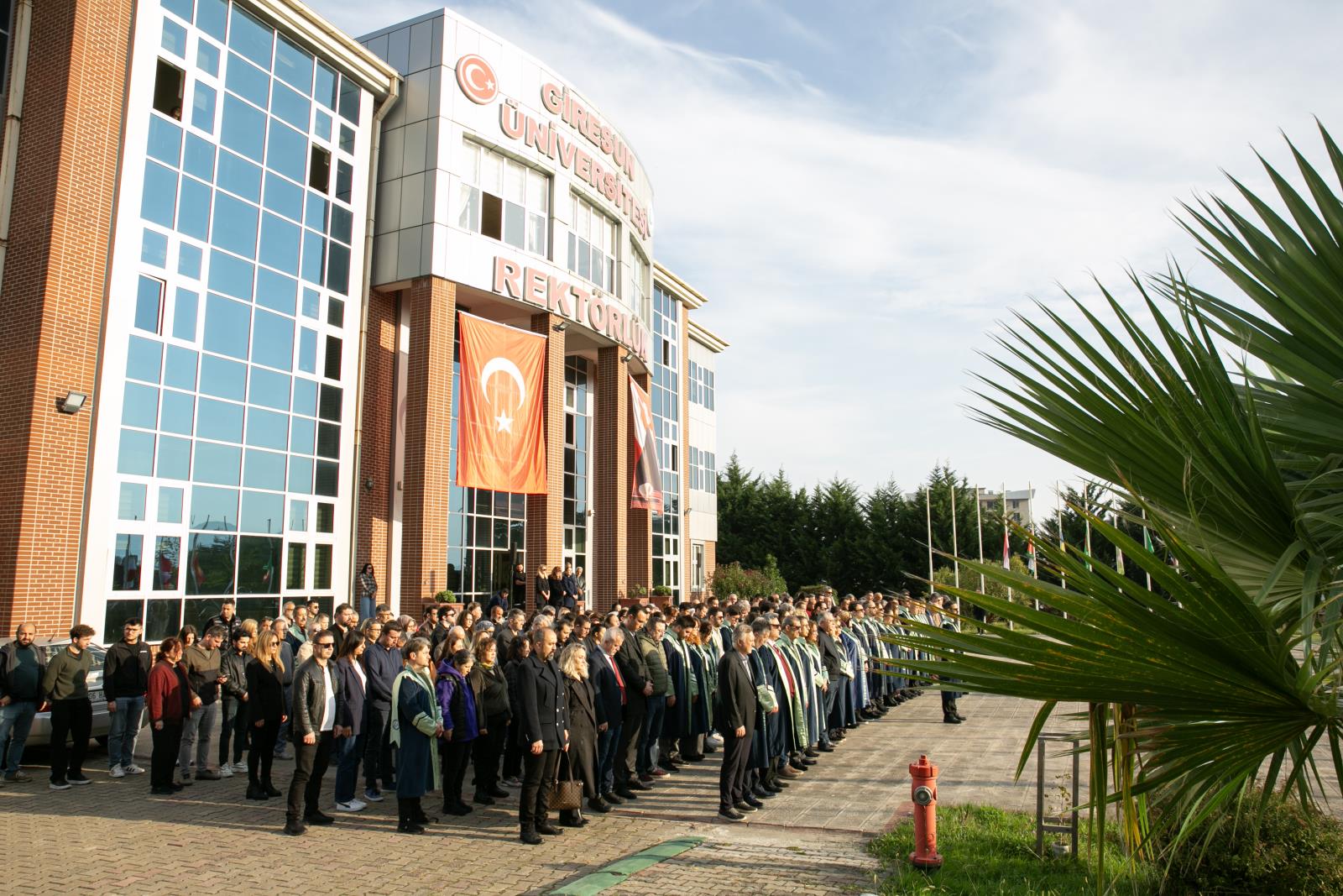 Tören, Giresun Üniversitesi Güre Yerleşkesinde bulunan Atatürk Anıtı’na çelenk sunumuyla başladı. Atatürk Anıtı’na çelengi Rektör Yardımcımız Prof. Dr. Hüseyin Şahin sundu. Saygı duruşu ve İstiklal Marşı’nın okunmasının ardından törende günün anlam ve önemine ilişkin konuşmayı Sağlık Bilimleri Fakültesi öğretim üyesi Doç. Dr. Eda Şahin yaptı.