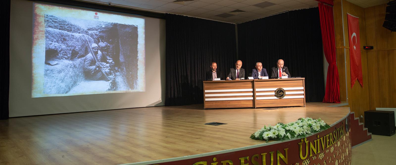 Sonrasında söz alan Üniversitemiz Fen Edebiyat Fakültesi Dekan Yardımcısı ve Tarih Bölümü Başkanı Prof. Dr. Sezai Balcı ise Çanakkale Savaşları’na giden süreci, 109 yıl önce ülkemizin ve dünyanın içerisinde bulunduğu durumu anlattı. "Osmanlı Devleti bu savaşta yaklaşık 10 farklı cephede savaştı. Genel olarak savaşın gidişatına bakıldığında Osmanlı Devleti’nin savaştığı cephelerin harekât planlarını Alman subayları organize etti. Cephelere genel olarak baktığımızda kanal cephesinde son derece başarısız bir sınav veriliyor. Bir diğeri Sarıkamış cephesidir ve bu cephede de Ruslara kötü şekilde mağlup olduk bunda iklim koşullarının da payı var. Bunun dışında savaşın diğer cephelerinde Osmanlı Devleti başarılı olmuştur. 1912-13 yıllarında Sırbistan, Bulgaristan, Romanya, Yunanistan gibi Balkan devletlerine mağlup olan Osmanlı Devleti 1915-16’da büyük başarılar elde etti diyebiliriz. Ancak burada bu başarılar elde edilmişken Almanların da baskısıyla antlaşma imzalanıp savaştan çekilmek yerine devam edilmiştir. Bu durum Osmanlı’nın çok başarılı olduğu bu cephelerden sonuç olarak istediğini alamamasına neden olmuştur. Çanakkale Savaşı Türk tarihinin en eşsiz, mümtaz savaşlarından birisi ve bizim için bir savunma savaşıdır.” diyerek sözlerini noktaladı.