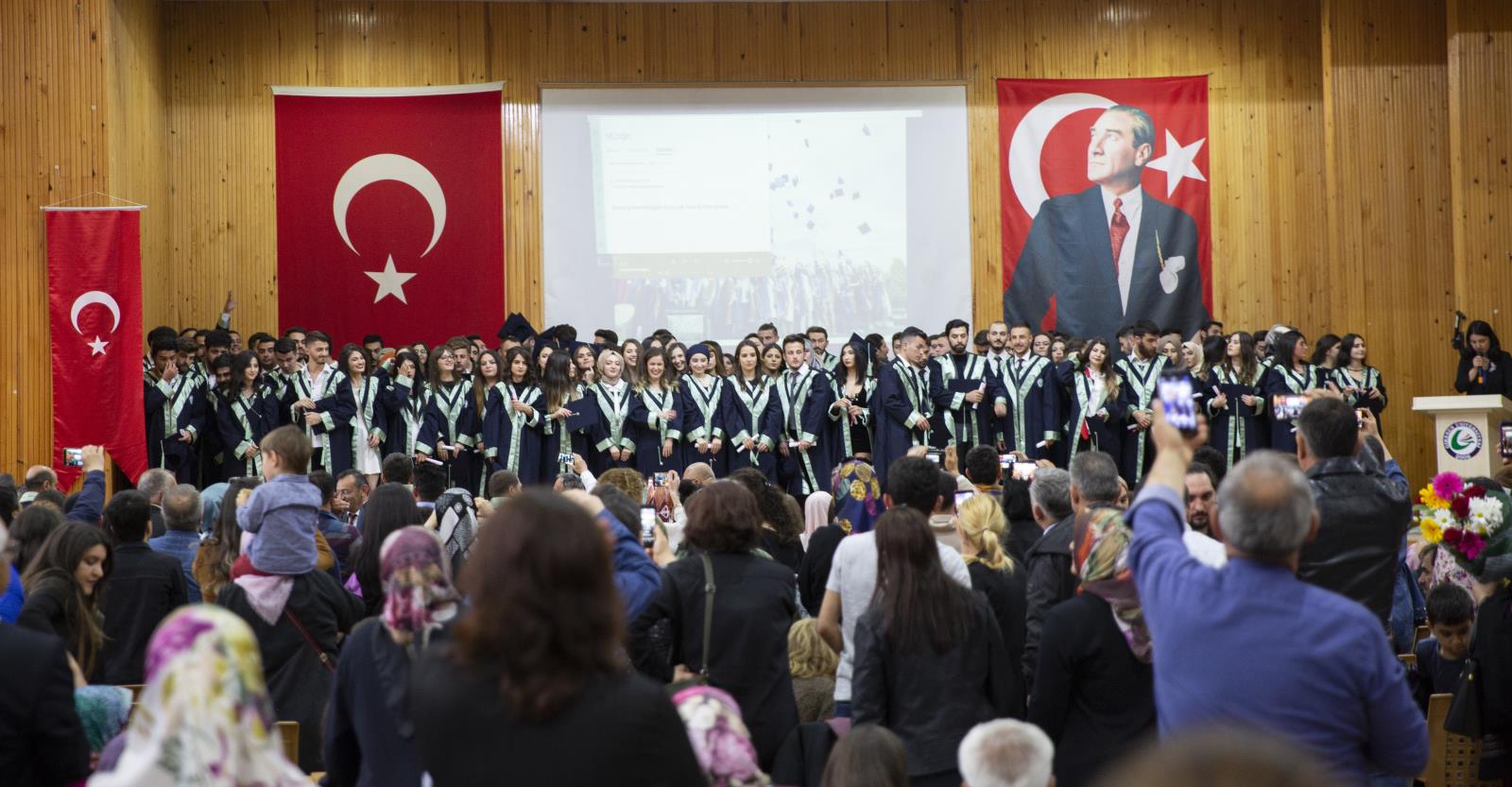 Rektör Yardımcısı Prof. Dr. Serkan Soylu’nun yanı sıra ilçe protokolü, mezun öğrencilerin aileleri, üniversitemiz akademik ve idari personeli ile vatandaşların katıldığı 2018-2019 Akademik yılının ilk mezuniyet programı, tüm öğrencilerin temsili diplomalarını almaları ve mezuniyet yeminini okumalarının ardından yapılan kep atma töreni ile son buldu.