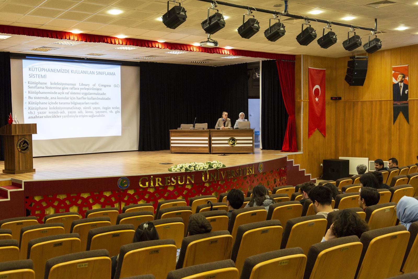 Kütüphane ve Dokümantasyon Daire Başkanlığı adına Öğr. Gör. Esma Şener ile Kütüphaneci Remziye Avcıoğlu’nun, merkez kütüphanesi bünyesinde bulunan veri tabanları, yayınlar, e-kaynaklar ve öğrencilerin bu kaynaklara erişim yolları hakkında yaptıkları sunumun ardından soru- cevap bölümü ile program sona erdi.