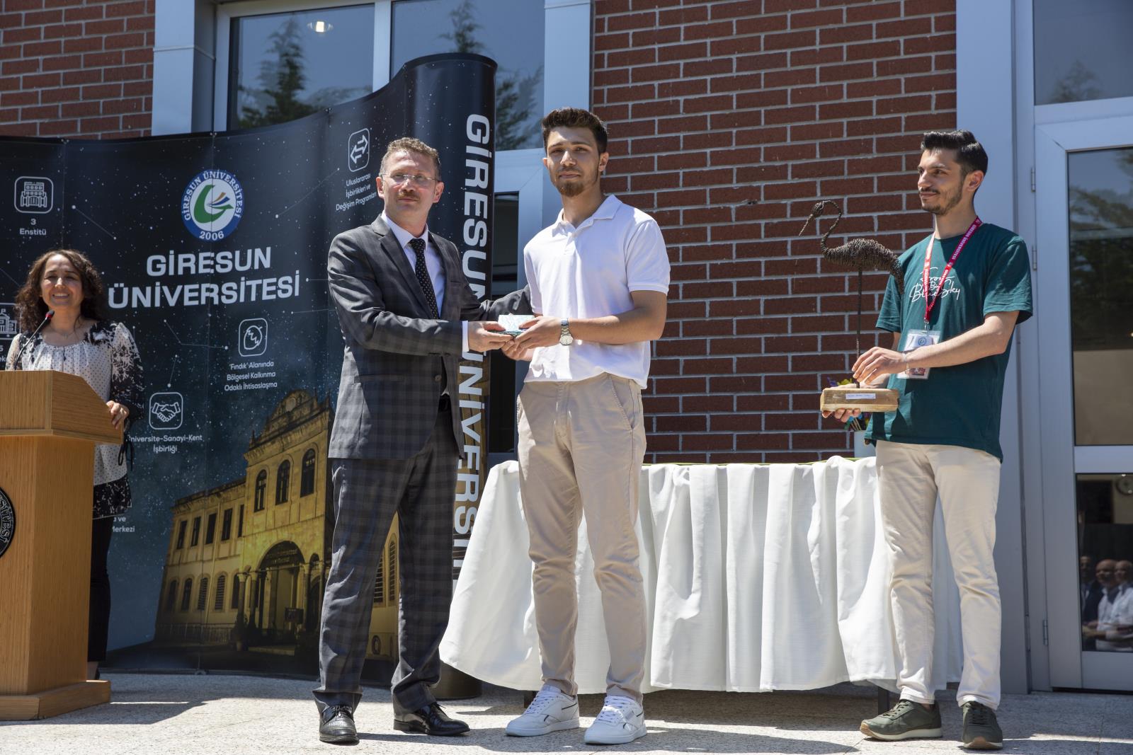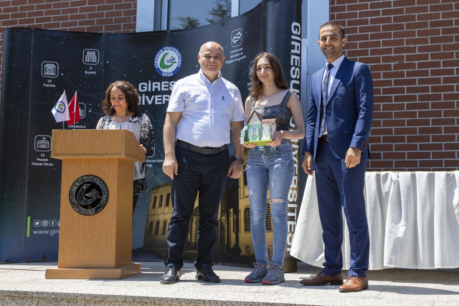 Törene, Çevre Şehircilik ve İklim Değişikliği İl Müdürü Murat Cavunt, Giresun Tapu İl Müdürü Orhan Köroğlu, Üniversitemiz Rektör Yardımcıları Prof. Dr. Güven Özdem ve Prof. Dr. Hüseyin Şahin, Çevre Şehircilik ve İklim Değişikliği İl Müdürlüğü temsilcileri, Üniversitemizin değerli akademik ve idari personellerinin katıldığı program, yarışmanın koordinatörlüğünü yürüten Giresun Üniversitesi Çevre Sorunları, Temiz Üretim Uygulama ve Araştırma Merkezi Müdürü Doç. Dr. Özlem Tunç Dede’nin açılış konuşması ile başladı. Bu yıl ilkinin gerçekleştirildiği Atık Çarkı yarışması ile döngüselliğe dayalı bir kaynak ve atık yönetimi yaklaşımı olan “Sıfır Atık” temelinde, sürdürülebilir bir üretim ve tüketim alışkanlığını teşvik etmek amacıyla üniversite öğrencileri arasında atıkların geri dönüştürülerek faydalı ürünlere/eserlere dönüştürülmesi ve çevresel farkındalığın arttırılmasının hedeflendiğini belirten Doç. Dr. Özlem Tunç Dede; öğrencilerin eğitim gördükleri camiada oluşan atıkları faydalı ürünlere dönüştürmeleri, atık malzemelerden yeni eserler/ürünler ortaya çıkararak yeşil dönüşüme katkı sağlamaları ve toplumda çevre bilincinin oluşturulmasında aktif rol almaları için teşvik edici olacağını belirtti. Yarışmaya katılan eserlerde öğrenciler kağıt, metal, cam, ahşap, tekstil atıkları vb. atık malzemeleri kullanarak çok çeşitli eserler oluşturmuş ve hepsi birbirinden değerli olan eserler Üniversitemiz akademik personelleri ve Çevre Şehircilik ve İlkim Değişikliği İl Müdürlüğü temsilcilerinden oluşan jüri üyeleri tarafından değerlendirilmiştir. Yarışmada atık karton, pet şişe, eski keçe ve kumaşların kullanıldığı Işıklı Kumbara eseri ile Sude Keleş üçüncülük ödülü; atık pet şişe, yumurta kabı, kullanılmış çöp şiş, atık kahve kutusu atıklarının kullanıldığı eserde doğadan ilham alınarak yapılan Solmayan Çiçekler eseri ile Ayşe Yılmaz ve Fatma Yılmaz ikincilik ödülü; eserinde inşaatlar ve çevreden temin ettiği atık telleri ve marangoz çöpünden elde ettiği ahşap malzemeyi kullanarak kanatsız bir kuş yapan ve bu eseri ile çevre kirliliğinin hayvanların özgürlüğünü ve hayatını kısıtladığı mesajını vermek isteyen Burhan Soycan ise birincilik ödülü almaya hak kazandı. Yarışmada ayrıca “Adeta karanlık hayatınızda açacak bir çiçek” olarak tanımladığı Aydınlık çiçek eseri ile Alihan İlgeç ve eskimiş tava, deniz kabukları, taş ve kum yardımıyla “Tavanın Tabloya Dönüşümü” eseri ile Tuba Uyar mansiyon ödülü almaya hak kazanırken, atık olarak bilinen haşlanmış nohut suyu ve yağı alınmış fındık posasını fındık yağı ile muamele ederek yan ürünler ile vegan mayonez üretimi yapan ve “Veganez” olarak isimlendirdiği ürünü ile Dicle Rojbin Kösen ise jüri özel ödülü almaya hak kazandı.