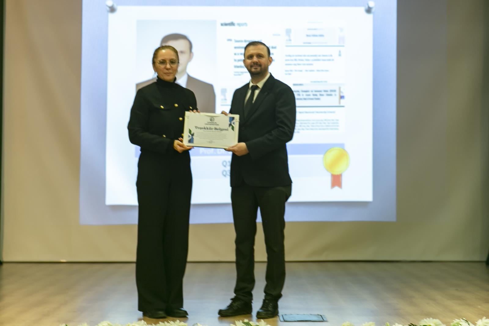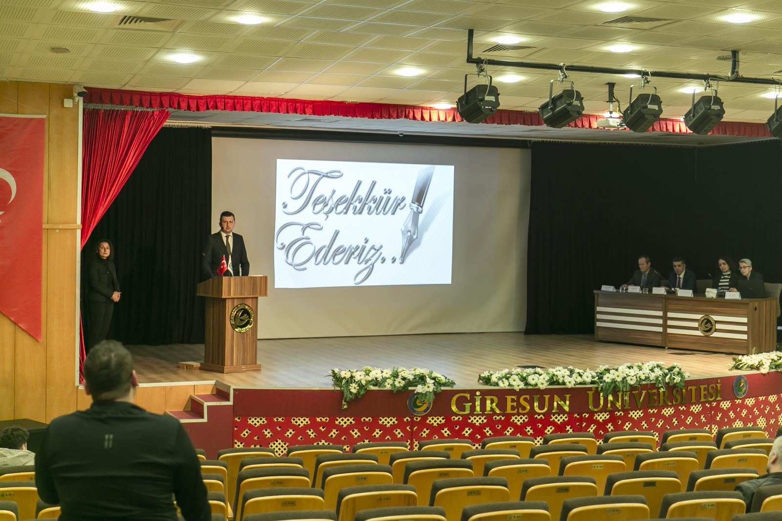 Rektör Yardımcıları Prof. Dr. Güven ÖZDEM, Prof. Dr. Emel UZUNOĞLU ve Prof. Dr. Hüseyin ŞAHİN ile Rektör Başdanışmanı Prof. Dr. Mustafa Şanal, Rektör Danışmanı Prof. Dr. Eren BAŞ ve Üniversitemiz akademisyenlerinin katıldığı program, saygı duruşu ve İstiklal Marşı'mızın okunmasıyla başladı.