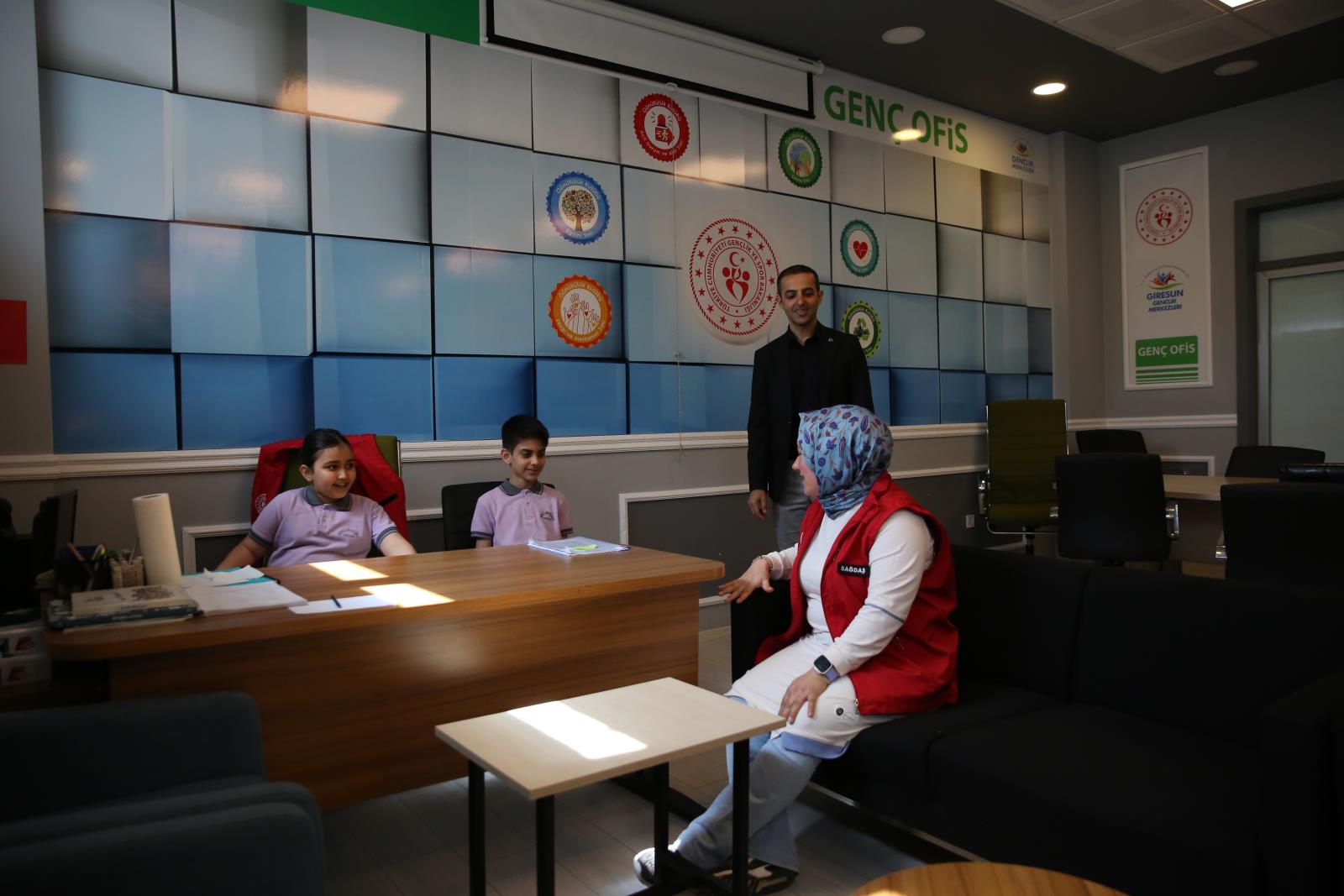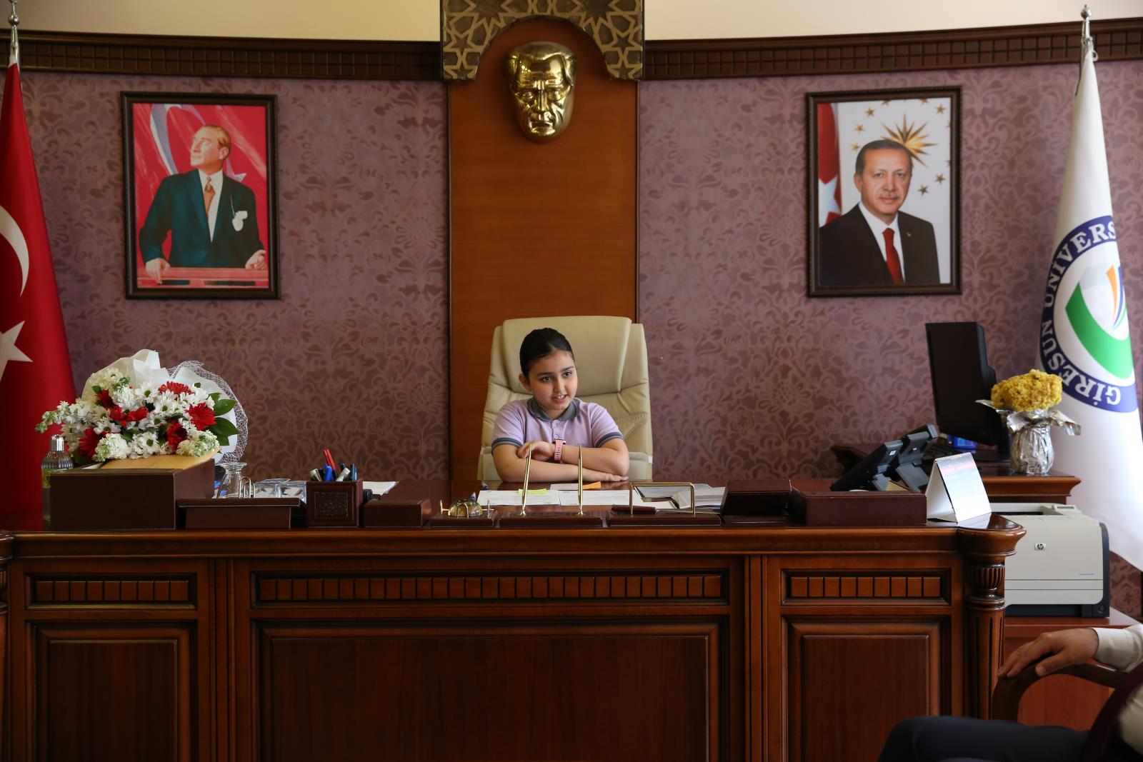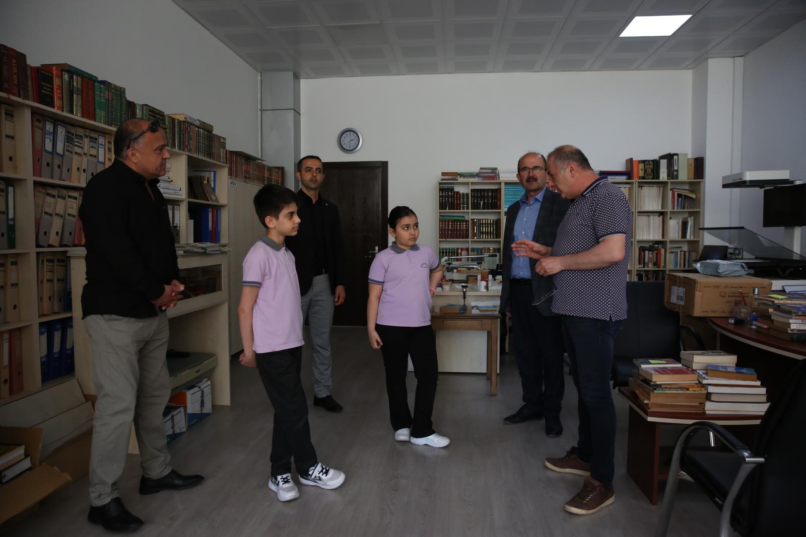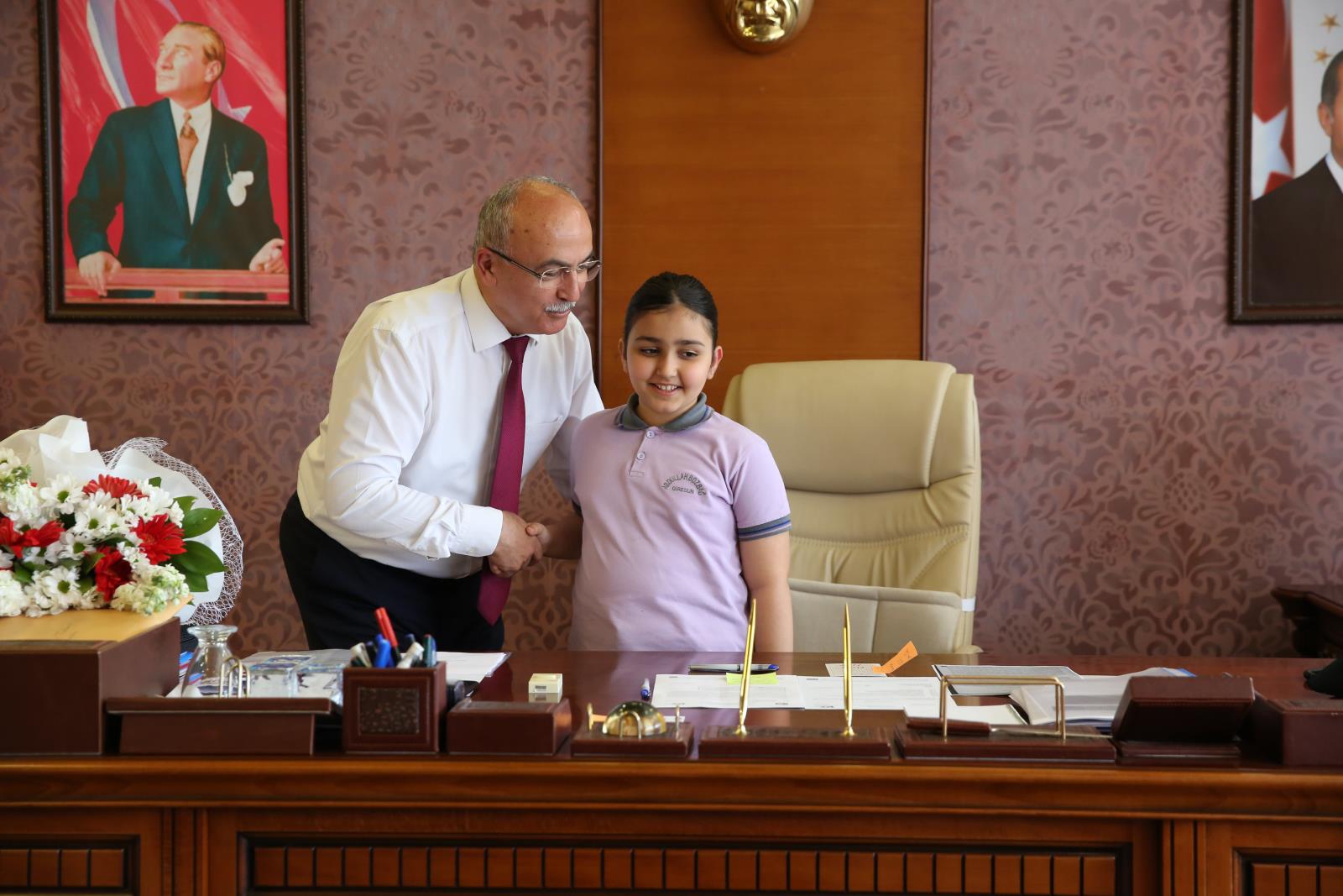 4. sınıf öğrencileri Edanaz Çanakci ve Yusuf Efe Emre, sınıf öğretmeni Muhammet Meşe ve okul müdürü Zeki Soylu'nun yer aldığı ziyarette Rektörümüz öğrencilerle temsili makam değişimi yaparak bir süreliğine makamını öğrencilere devretti. Ziyaretten duyduğu memnuniyeti dile getiren Rektörümüz Prof. Dr. Yılmaz Can, öğrencilerin bayramını kutlayarak kendilerine sağlıklı, mutlu ve başarı dolu bir gelecek temennisinde bulundu.