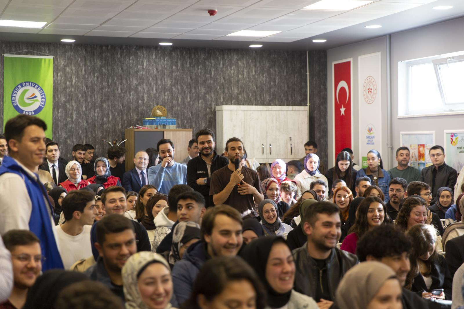 Öğrencilerin yoğun katılım gösterdiği etkinlikte Bakan Yardımcısı Dr. Enes Eminoğlu konuşmasında, “Öncelikle bu etkinlikte emeği geçen tüm arkadaşlarımıza teşekkür ediyorum. Bakanlık olarak gençlerimize her anlamda kapılarımız sonuna kadar açık. Gençlik ve Spor Bakanlığı adı üzerinde zaten gençlerin bakanlığı. Bu anlamda kültür, sanat, sportif, teknoloji, bilim tüm alanlarda gençlere kapımız açık. Sizlerin üniversitede okurken akademik başarıların yanında genç ofisleri, üniversite kulüplerini aktif olarak kullanmanız gerekiyor. Bu çalışmalar sizleri daha iyi bir noktaya taşıyacaktır. Üniversite yılları heybeyi doldurma zamanıdır. Bu imkanları lehinize kullanarak kişisel gelişiminize katkı sağlamalısınız.” sözlerine yer verdi.