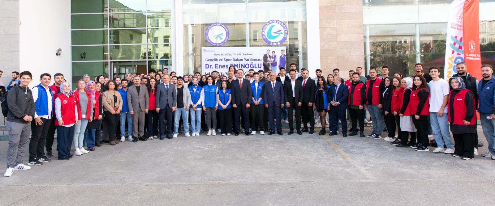 Rektörlük Makamında Rektörümüz Prof. Dr. Yılmaz Can’ı ziyaret eden Bakan Yardımcısı Eminoğlu, ardından Gençlik Ofisi’nde öğrencilerle bir araya geldi.