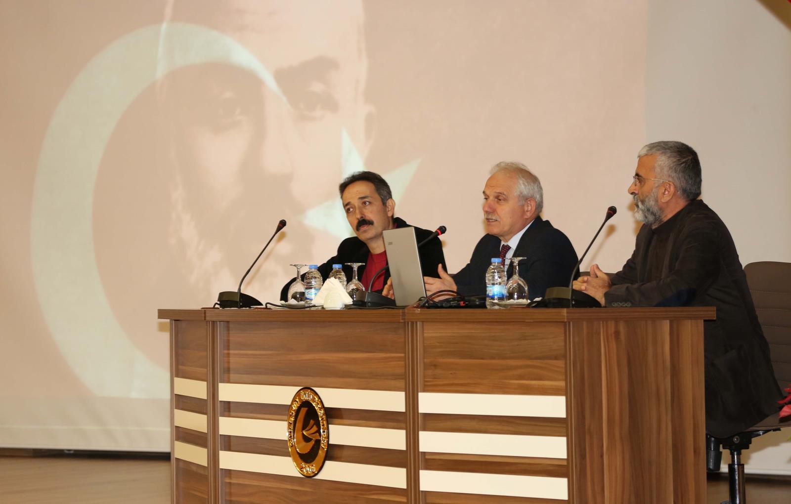 İlk olarak Mustafa Kemal Atatürk’ün M. Akif Ersoy’a dair düşüncelerine değinen Dr. Öğr. Üyesi Dursun Şahin, onun İstiklal Marşı’nın özellikle; “Hakkıdır, hür yaşamış bayrağımın hürriyet; Hakkıdır, Hakk’a tapan milletimin istiklal !” dizelerini beğendiğini ve bu dizelerde ifade edilmek istenen Hürriyet ve İstiklal aşkının millet tarafından asla kaybedilmemesi gerekliliğine vurgu yaptığını söyledi.