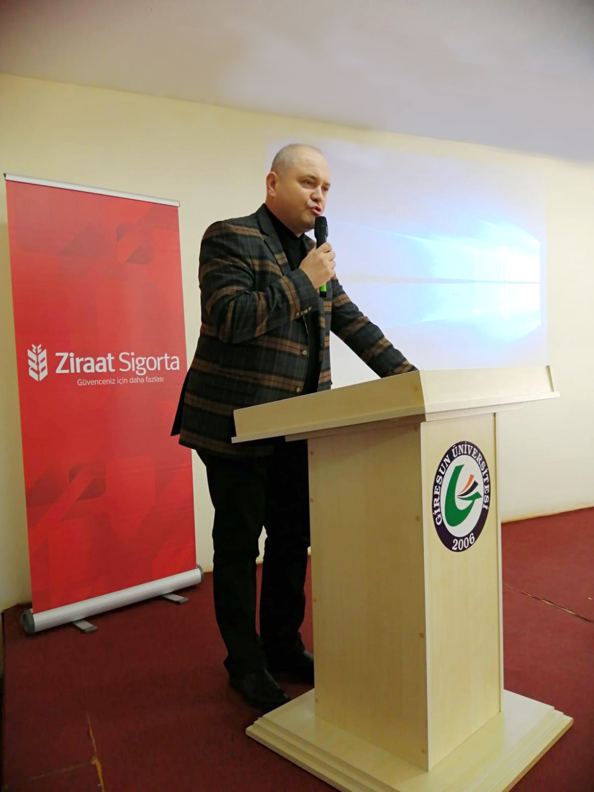 Açılış konuşmasının ardından davetli konuşmacı Ziraat Sigorta A.Ş. ve Ziraat Emeklilik A.Ş. Karadeniz Bölge Yöneticisi Murat Selçuk Arslan konuşmasını yapmak üzere kürsüye davet edildi. Konuşmasında genel olarak uluslararası ticaret, temel sigortacılık ve nakliyat sigortası kavramlarına değinen Arslan, sigortacılık sektörüne ve bu sektörün önemine ilişkin açıklamalarda bulundu. Daha sonra uluslararası şirketlerin temel risk alanları ve bu risk tanımlarının nasıl etkin ve verimli yönetilmesi gerektiğine değinen Arslan, stratejik açılımların paylaşılmasının öneminden bahsederek sözlerini sonlandırdı.