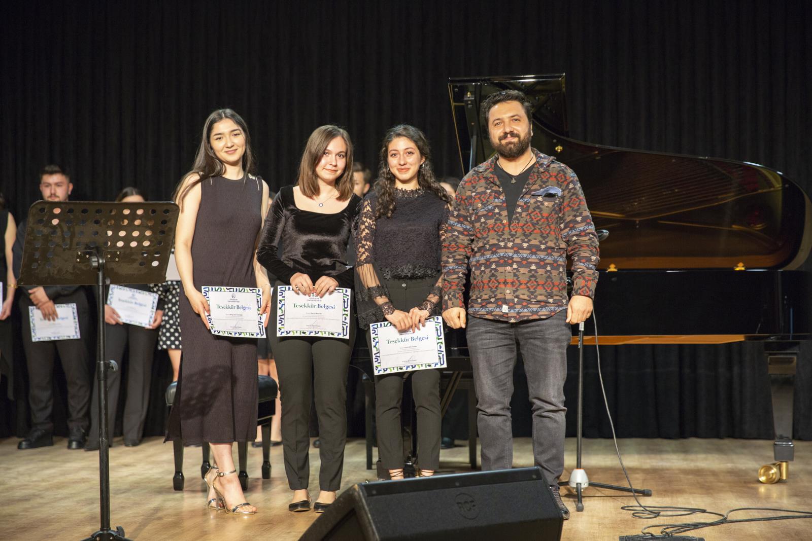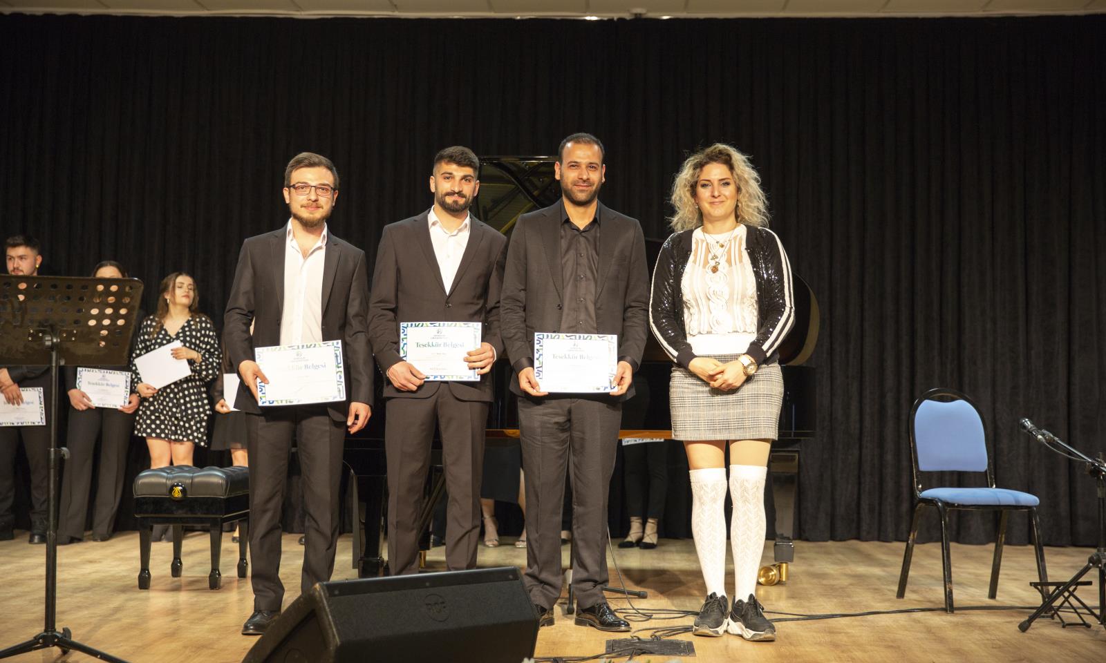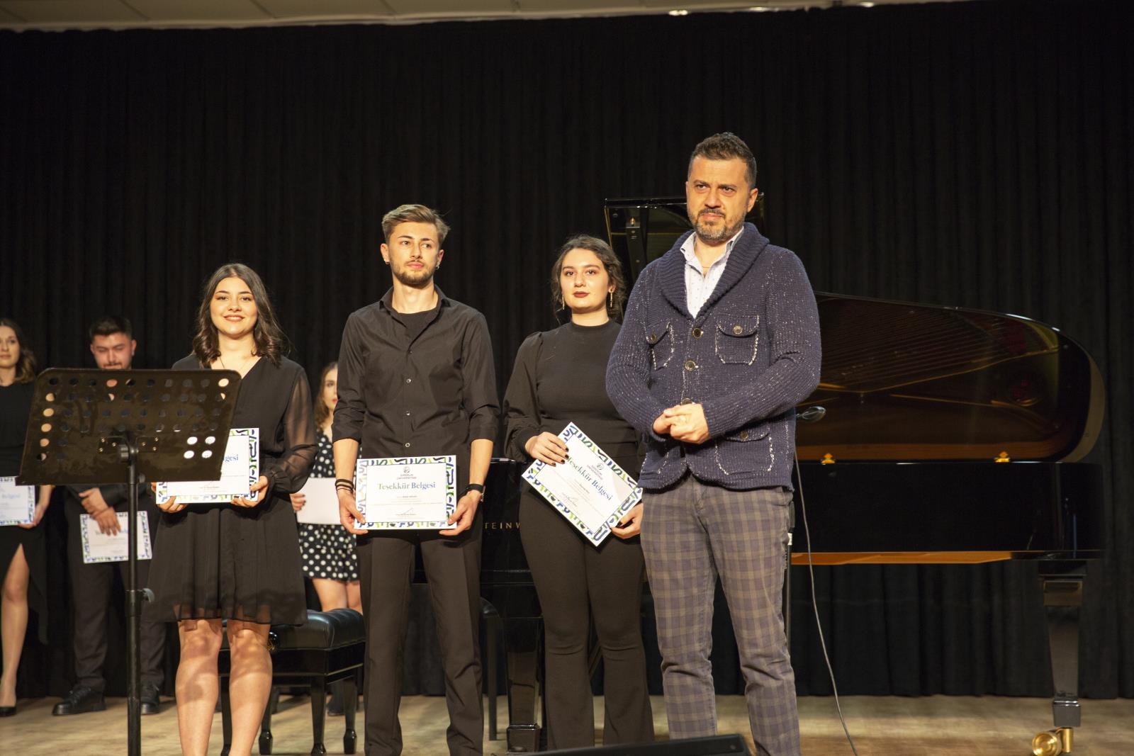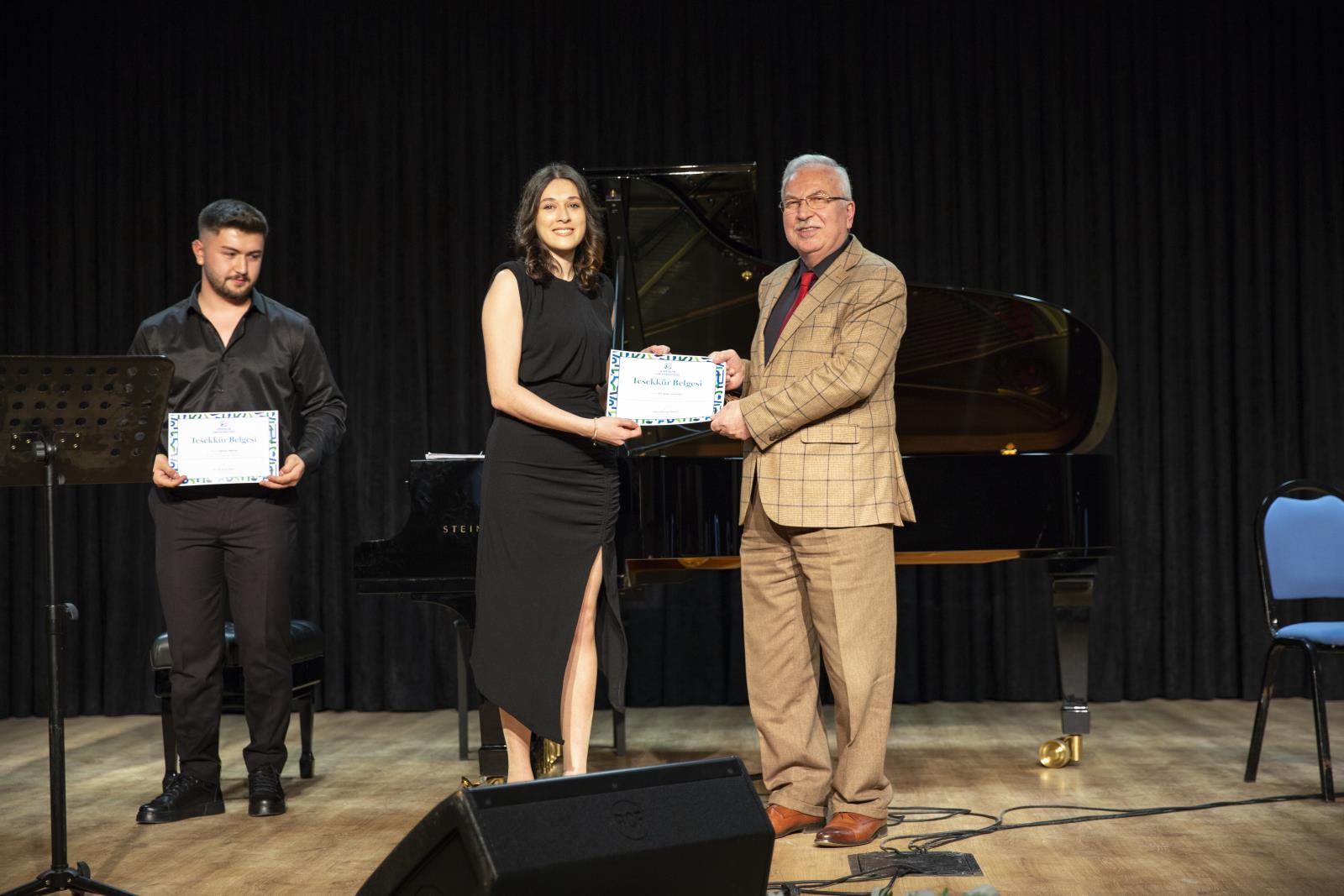 Devlet Konservatuvarı öğrencilerimizin sahne aldığı konser dinleyenlere keyifli anlar yaşattı. Konser öncesi Rektör Yardımcımız Prof. Dr. Hüseyin Peker ve Devlet Konservatuvarı öğretim üyelerimiz öğrencilere teşekkür belgesi vererek konserde emeği geçen herekese teşekkür ettiler.
