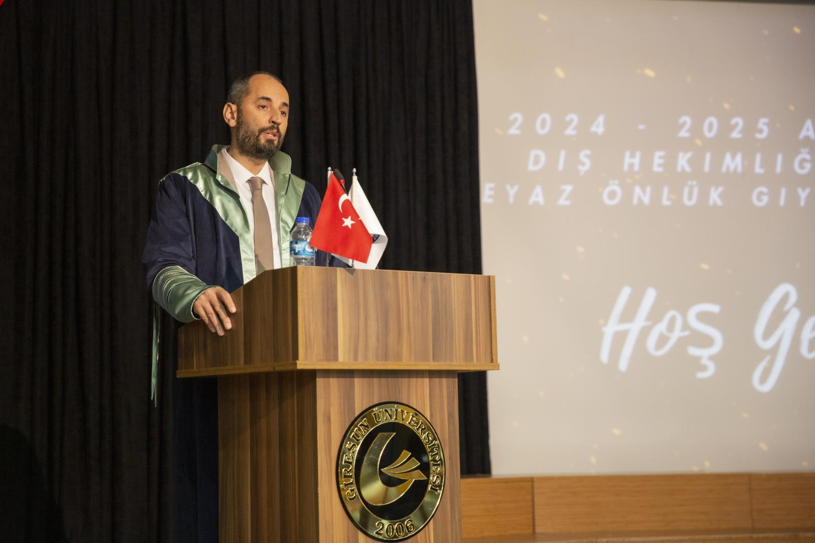 Beyaz önlük giyme töreninde konuşan Rektörümüz Prof. Dr. Yılmaz Can ise “Diş Hekimliği Fakültesi’ni zor günlerde kurduk. Daha önce kurulmuştu ancak aktif hale getirmemiz zor bir dönem olan pandemi dönemine denk geldi. Öncelikle hocalarımızı gönülden kutluyorum. Çok büyük bir fedakârlık gösterdiler. Bu süreçte bize çok destek oldular. Diş Hekimliği Fakültemizin kuruluşunda akademisyenlerimizin çok büyük katkısı var. Ayrıca fakültemizi aktif hale getirirken çalışmalarımız için ödeneğimiz yeterli gelmedi. Giresun’da hayır sahiplerinden o günkü şartlarda ciddi bir miktar destek aldık. Topladığımız bu bağışları ödeneğimize ilave ettik ve hastanemizi açtık. Onlara da burada teşekkür ediyorum. Bugün beyaz önlüklerini giyecek genç arkadaşlarımı gönülden kutluyorum, tebrik ediyorum.” diyerek sözlerini noktaladı.