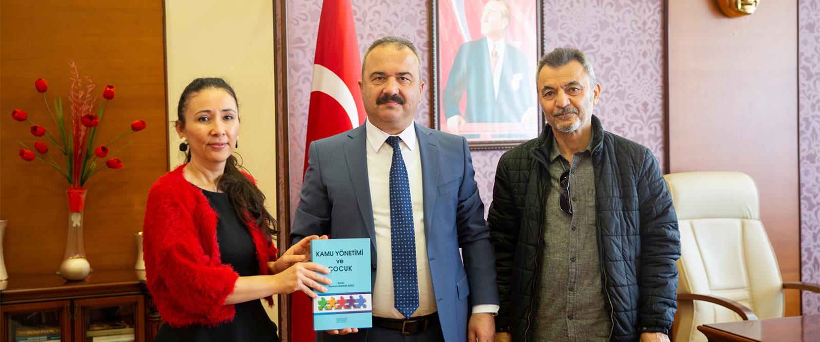 Ziyaretlerinden ötürü Yasemin Mamur Işıkçı ve Selahattin Yılmaz’a teşekkür eden Rektörümüz, “Kamu Yönetimi ve Çocuk” kitabının bu alanda çalışma yapacaklar için önemli bir kaynak olabileceğini belirterek, kitabın editörlüğünü ve bölüm yazarlığını yapan Işıkçı’yı çalışmasından ötürü tebrik etti.