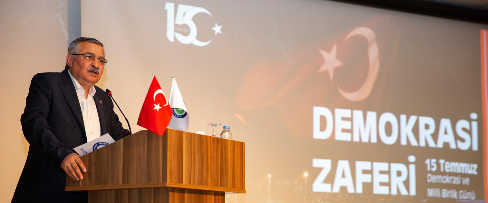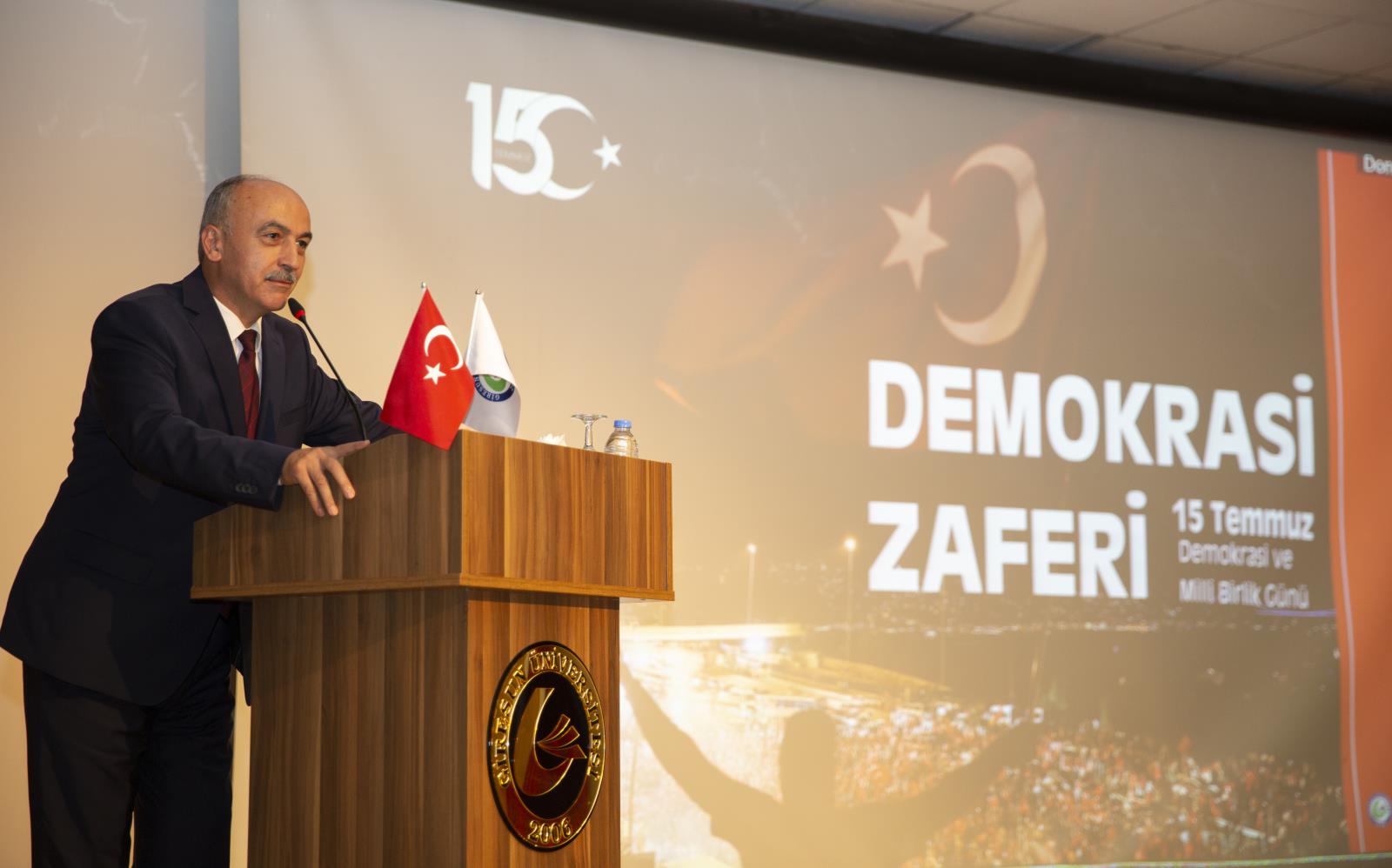 Ülkenin böyle bir girişimle tekrar karşı karşıya kalmaması için birlik ve beraberlik ruhunun korunmasının önemine vurgu yapan Selvi, konuşmasının ardından teşekkür belgesini Rektörümüz Prof. Dr. Yılmaz Can’dan aldı.