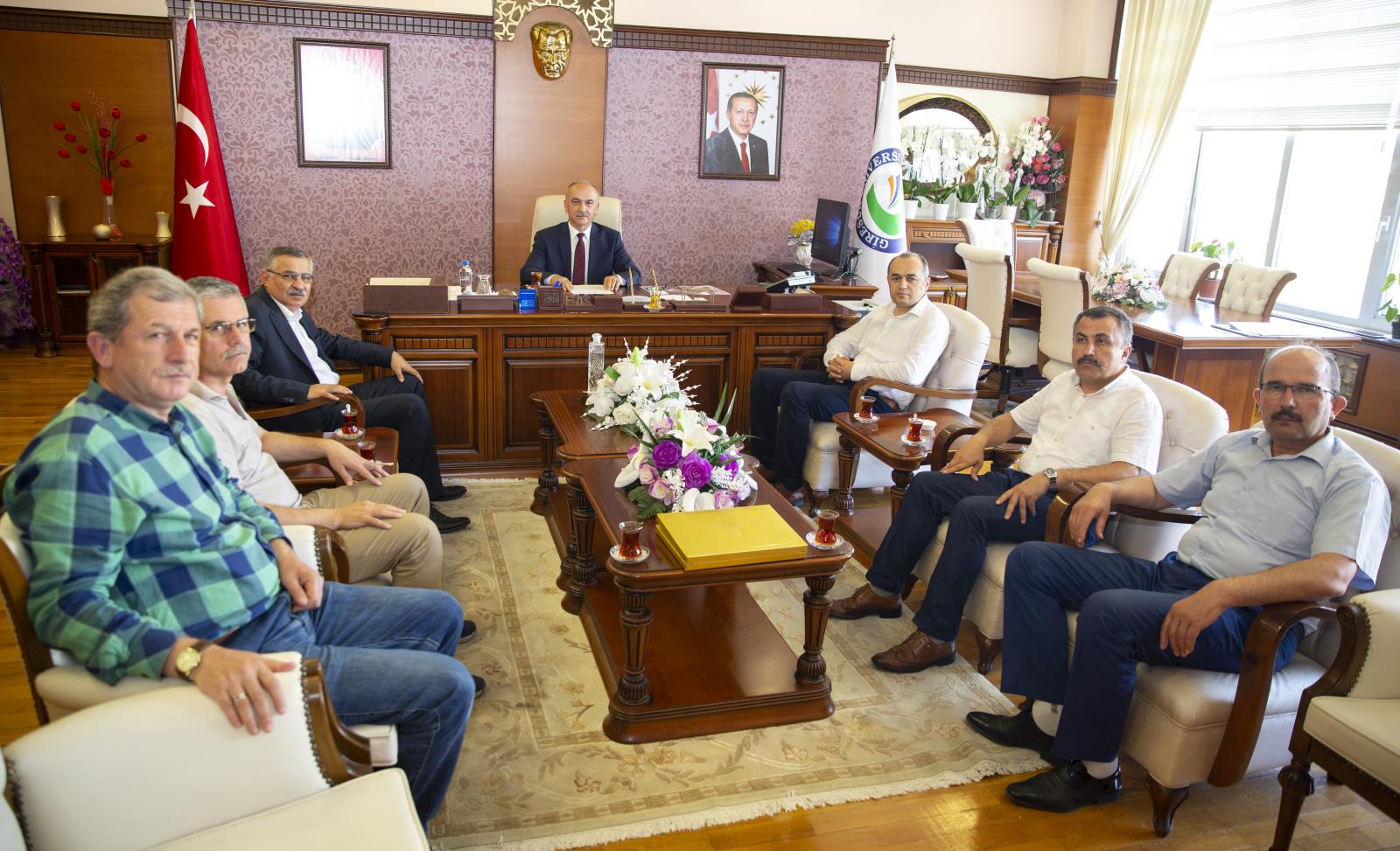 Konferans için Üniversitemize gelen Eğitim Bir-Sen Genel Sekreteri Latif Selvi ve beraberindeki heyet, ilk olarak Rektörümüz Prof. Dr. Yılmaz Can’ı makamında ziyaret ettiler.