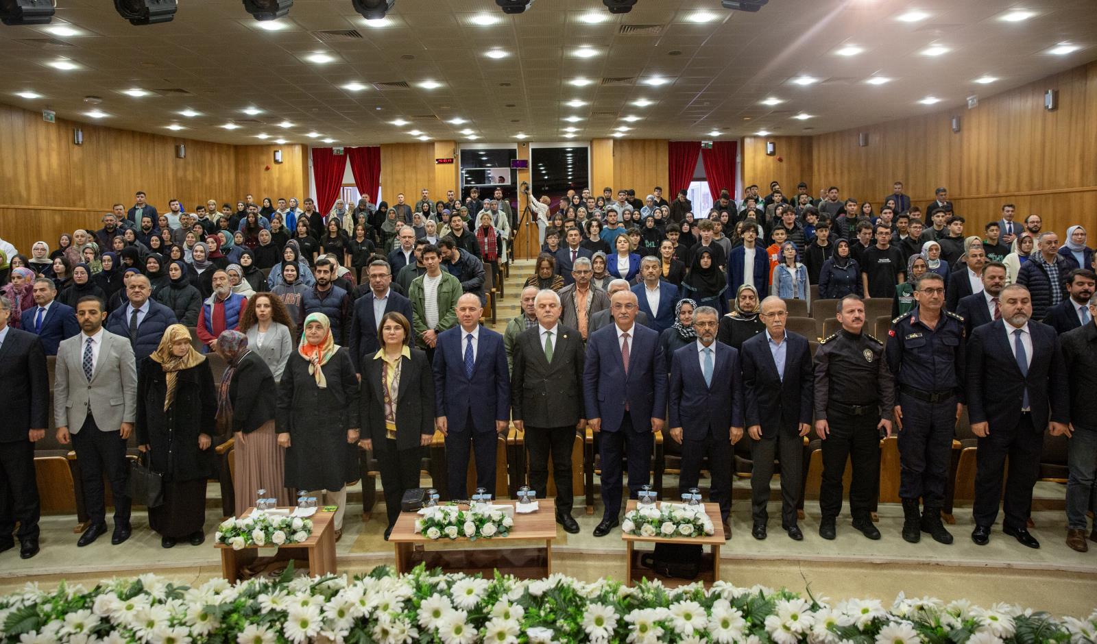 Gazi Mustafa Kemal Atatürk ve tüm şehitler için yapılan saygı duruşu ve ardından İstiklâl Marşı’mızın okunması ile başlayan program, Kur’an-ı Kerîm tilaveti ile devam etti.