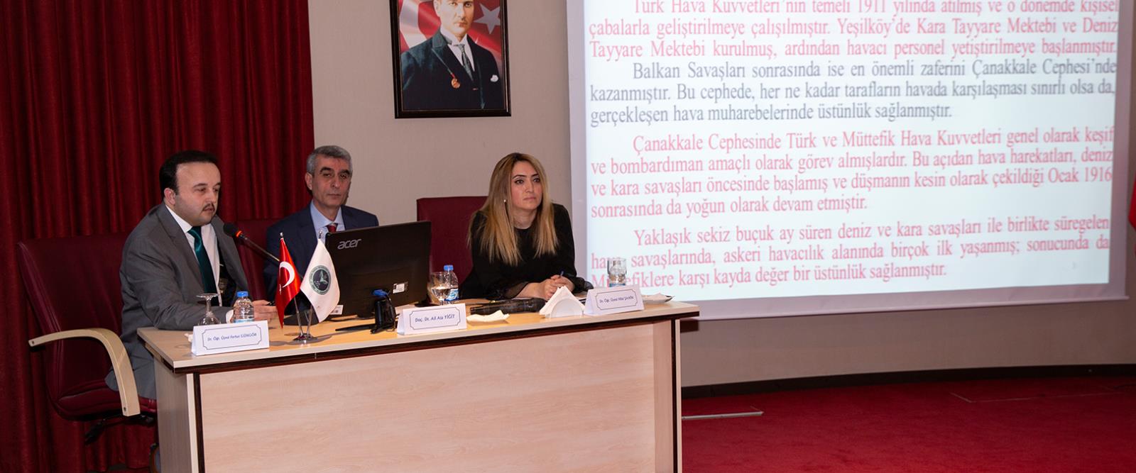 Çanakkale Savaşlarında Türk hava harekatı konusunda sunum yapan Dr. Öğr. Üyesi Ferhat Güngör, Türk askeri tarihinin en önemli savaşlarından biri olan Çanakkale Savaşlarında, hava kuvvetlerinin rolünün pek fazla incelenmediğini ve gündeme getirilmediğini söyledi.