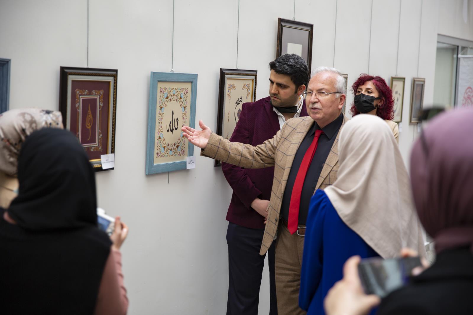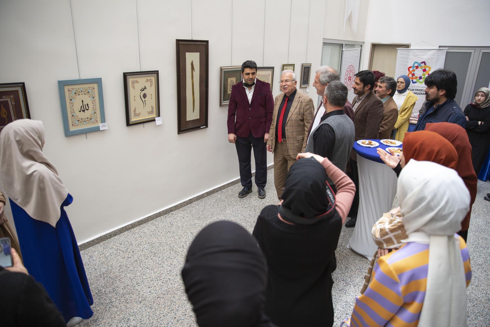 Sergi açılışında konuşan Rektör Yardımcımız Prof. Dr. Hüseyin Peker, hat ve tezhip sanatından eserlerin bulunduğu serginin açılışını yapmaktan duyduğu memnuniyeti dile getirerek, sergide emeği geçen herkese teşekkür etti.