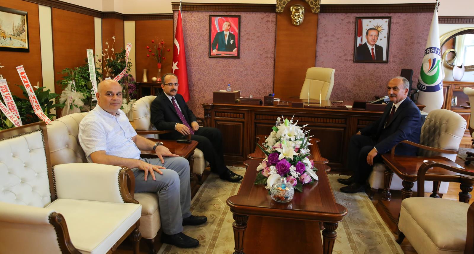 Yeni görevinden dolayı Rektörümüzü tebrik eden Sayın Alan, iyi dilek ve temennilerde bulundu. Gündeme ilişkin konuların da ele alındığı ziyarette, Rektör Yardımcısı Prof. Dr. Güven Özdem de hazır bulundu.
