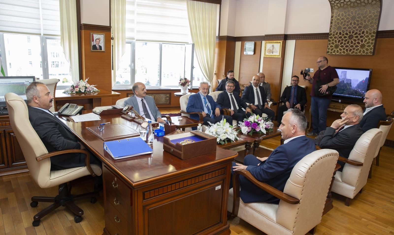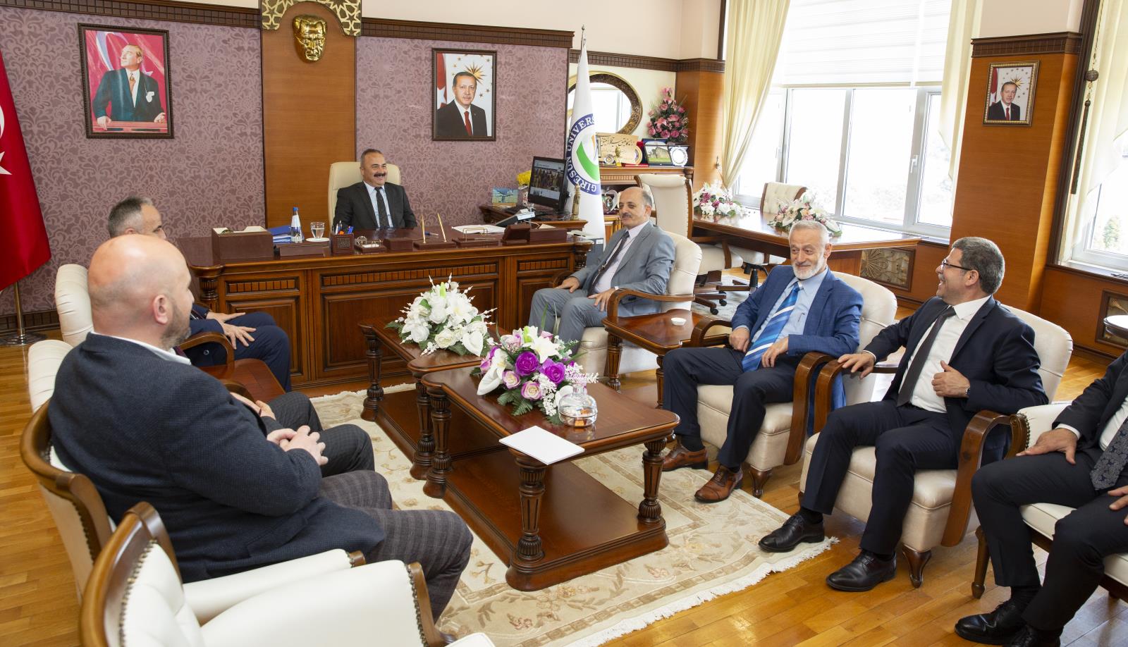 Gündeme ilişkin konuların ele alındığı ziyaretten duyduğu memnuniyeti dile getiren Rektörümüz, ayrıca; yakın zamanda Giresun Federasyonu Genel Başkanlığına gelen Muhterem Memiş’i de yeni görevi için tebrik ederek başarı dileklerini iletti.