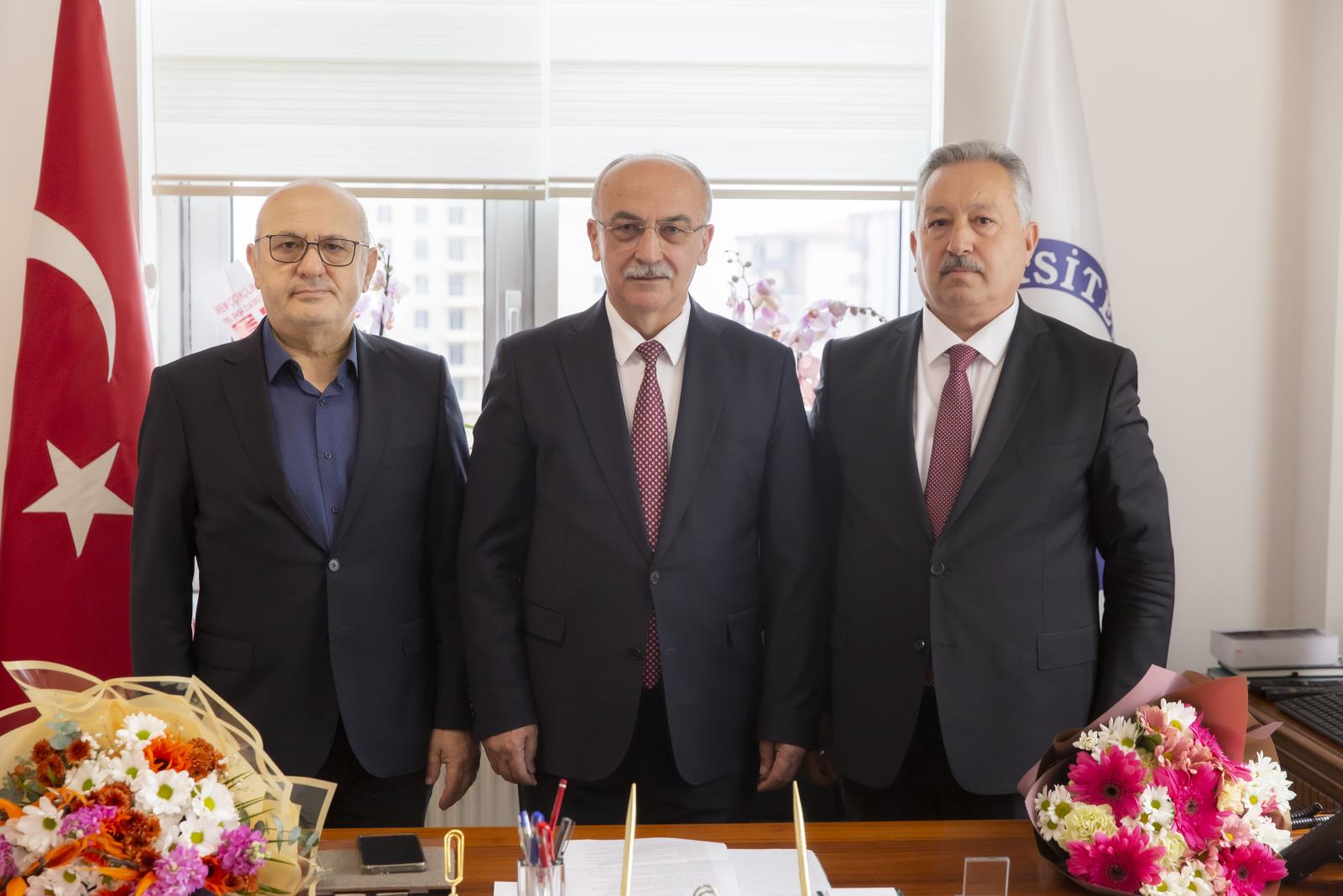 Rektör Yardımcıları Prof. Dr. Güven ÖZDEM, Prof. Dr. Hüseyin ŞAHİN, Prof. Dr. Emel UZUNOĞLU, Rektör Danışmanları Prof. Dr. Eren BAŞ ve Doç. Dr. Seda Nur ATASOY ile daire başkanlarının hazır bulunduğu devir teslim töreni, karşılıklı iyi dilek temennileri ve hatıra fotoğrafı çekimi ile sona erdi.