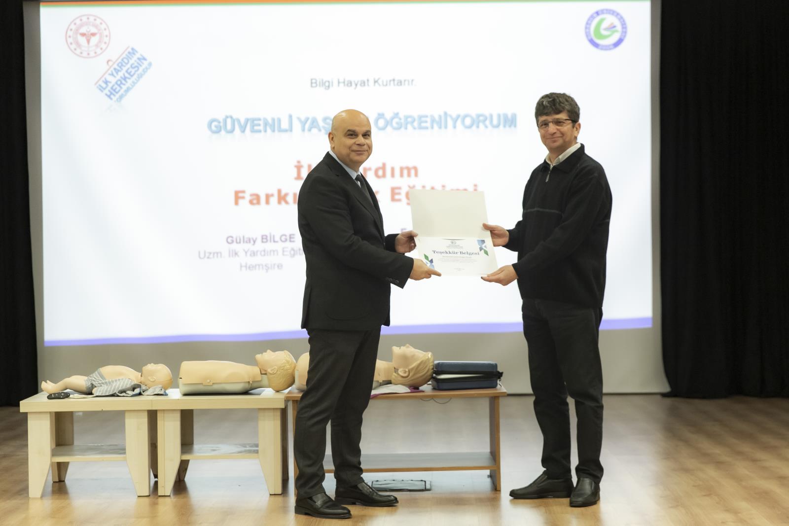 Programın ilk bölümünde katılımcılara; genel ilk yardım bilgileri, ilkyardımcı kimliği, olay yeri güvenliği ve değerlendirmesi, hasta ve yaralıların durumunun belirlenmesi, 112 Acil ile doğru iletişim, temel yaşam desteği ve Otomatik Eksternal Defibrilatör (OED) kullanımına ilişkin teorik ve uygulamalı bilgiler aktarıldı. Ayrıca yetişkin, çocuk ve bebeklerde acil durumlarda uygulanacak yöntemler görsel materyaller eşliğinde anlatıldı.