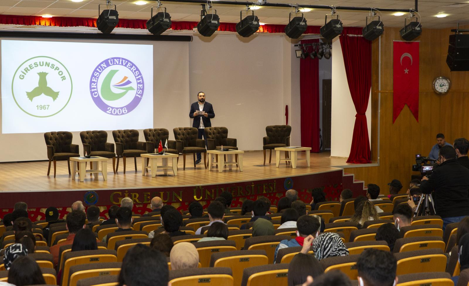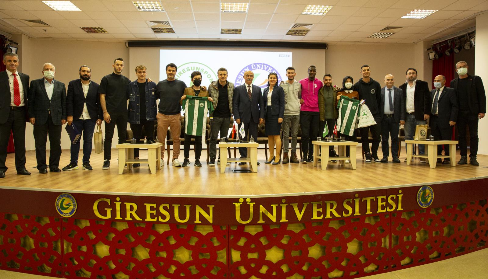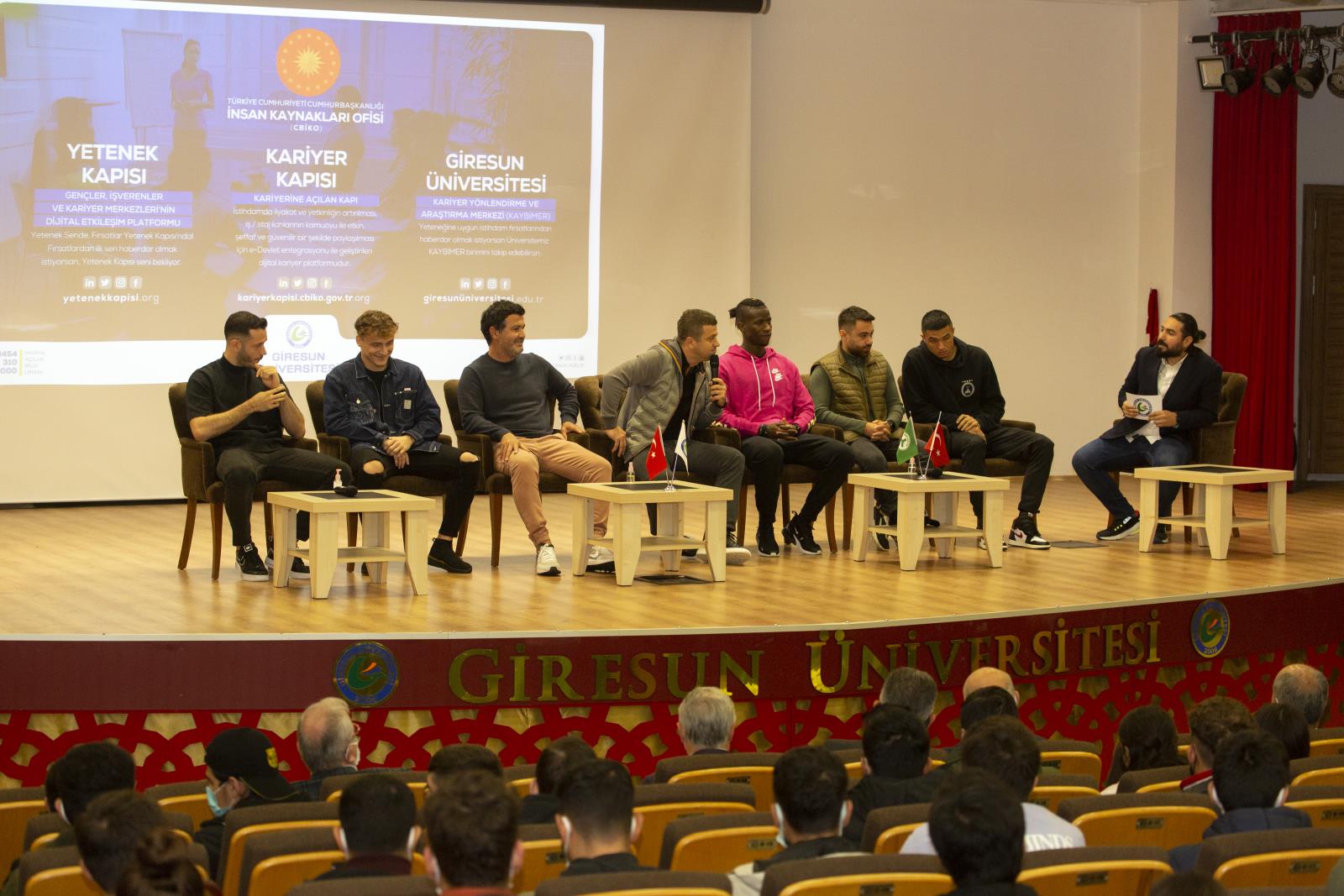 Üniversitemiz Kariyer Yönlendirme ve Bilgilendirme Uygulama ve Araştırma Merkezi (KAYBİMER) tarafından düzenlenen "Kampüste Kariyer" temalı söyleşiye Giresunspor Teknik Direktörü Hakan Keleş, oyunculardan Onurcan Piri, Erol Can Akdağ, İbrahima Balde, Joseph William Champness ile birlikte kulübün sportif direktörü Fatih Kavlak katıldılar.