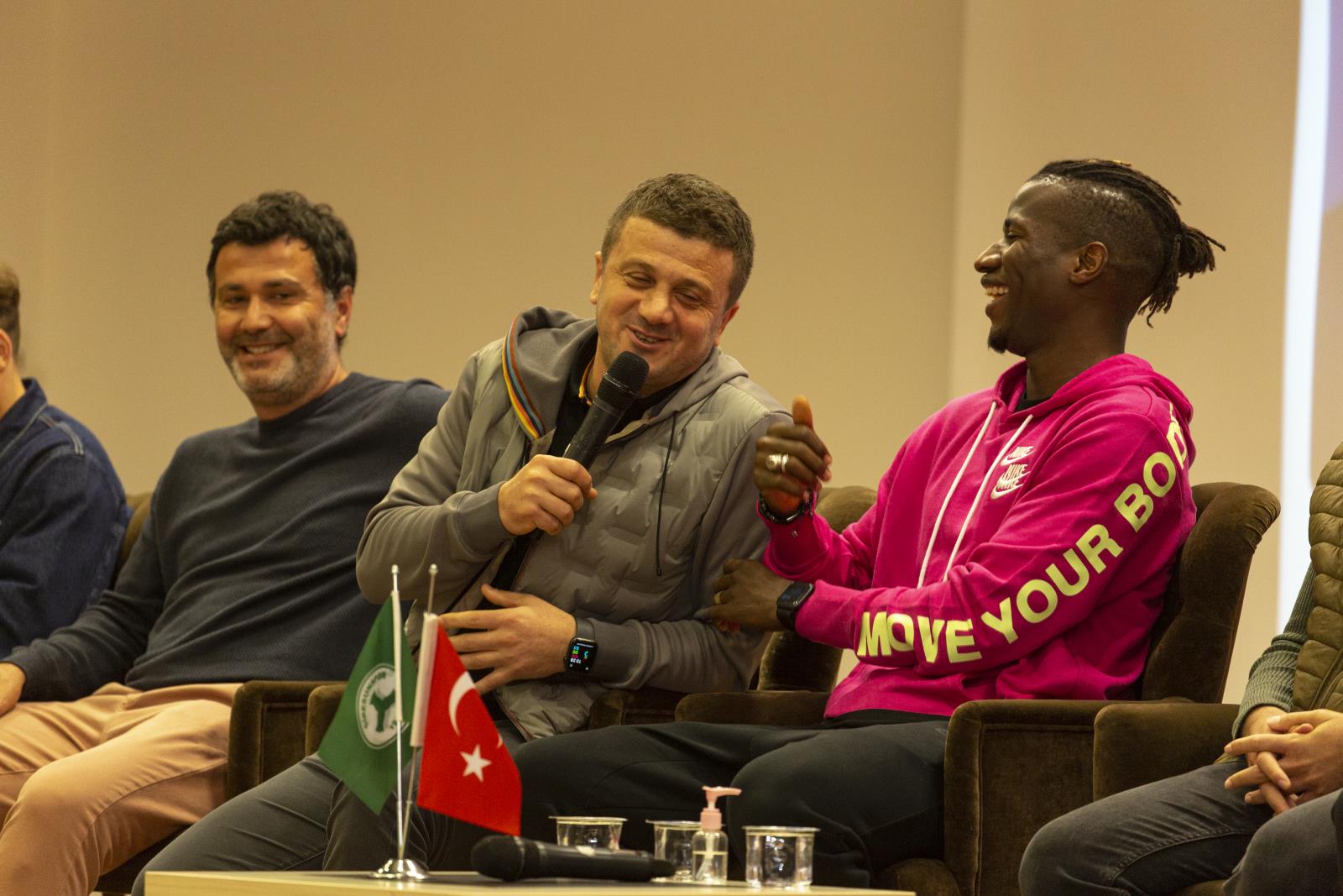 Moderatörlüğünü Öğr.Gör. Uğur Kahraman'ın yaptığı söyleşide söz alan Teknik Direktör Hakan Keleş, 44 yıl sonra kazanılan şampiyonluğun taraftarlar dahil herkesin emeği ve alınteri ile gerçekleştiğini söyledi.
