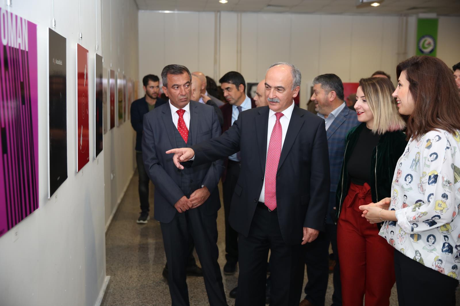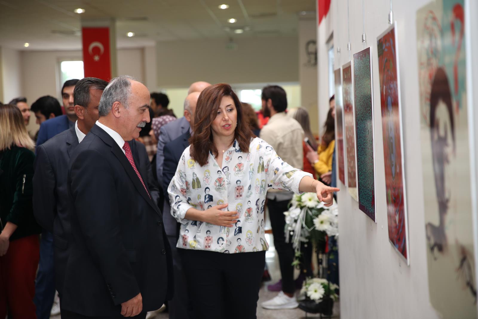 Kadına yönelik şiddetin hiçbir şekilde kabul edilemeyeceğini ve bu konuda toplumun her kesimine büyük görevler düştüğünü söyleyen Rektörümüz, “KADIN” başlığıyla düzenlenen sergide emeği geçenleri ve eser sahiplerini, konuya gösterdikleri hassasiyetten ötürü tebrik etti.