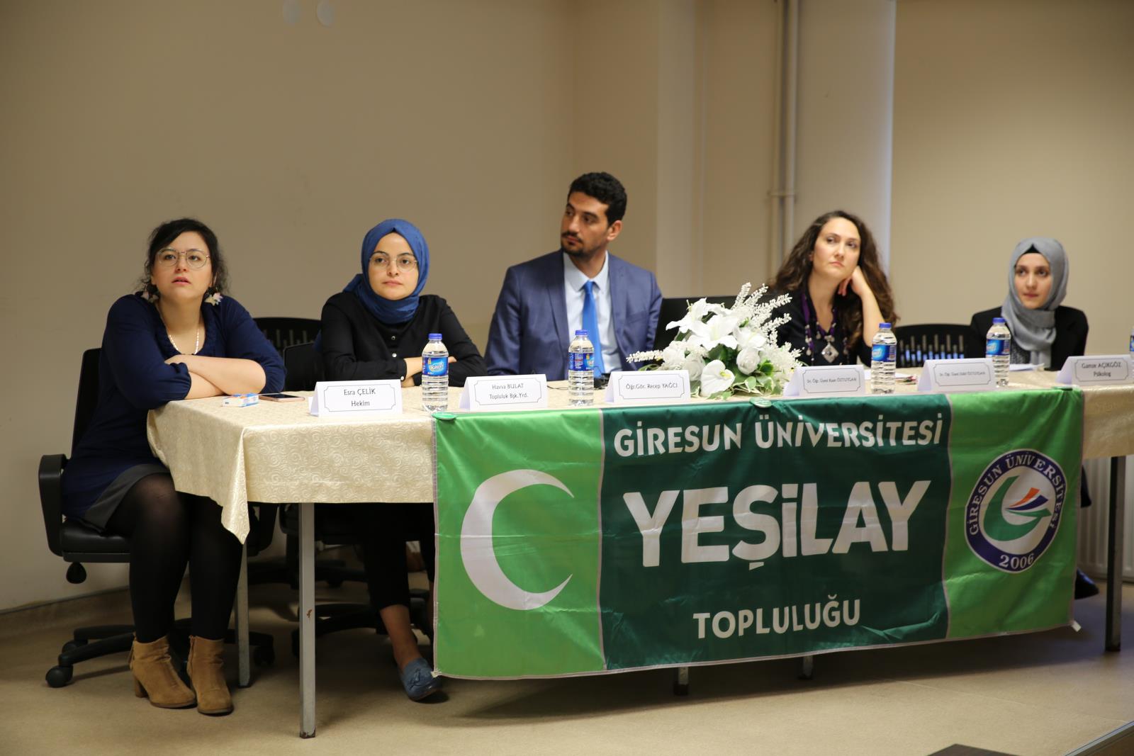 Dr. Öğr. Üyesi Kaan Öztutgan’ın moderatörlüğünde gerçekleşen panelde; Öğr. Gör. Recep Yağcı, Dr. Öğr. Üyesi Zülüf Öztutgan, Dr. Esra Çelik, Psikolog Gamze Açıkgöz ve Havva Bulat yaptıkları sunumlarda, bağımlılık konusunu dini, hukuki, nörofizyolojik, psikolojik ve teknoloji açıdan ele aldılar.