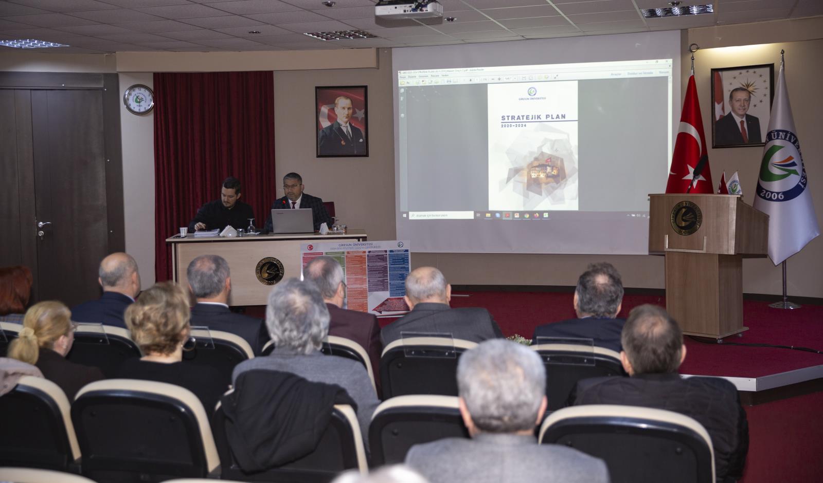 2020-2024 Stratejik Planının hayata geçmesiyle beraber süreç içerisinde yeniden revize edilebileceğini söyleyen Rektörümüz konuşmasında şu ifadelere yer verdi: “Planlama, hayatın her aşamasında çok önemlidir. Zaman kaybına, emek kaybına ve sermaye kaybına sebep olmamak için planlama yapmamız lazım. Biz de bu düşünceyle Üniversite olarak önümüzdeki dört yılda hangi amaç ve hedeflere ulaşmak istediğimizi belirledik. Üniversitemiz 2020-2024 Stratejik Planı da bu çerçevede hazırlandı. Bilim dünyasında, eğitim dünyasında sürekli gelişmeler yaşanmakta. Stratejik planımızı da hem bu gelişmeler ışığında hem de sizlerden gelecek öneriler doğrultusunda güncelleyebiliriz. Önümüzdeki bir yıl içinde tüm birimlerimizle bir araya gelip, stratejik planımızın bir yılını değerlendirmeye alıp, üzerine konuşalım. Ayrıca kalite konusunu da unutmamak gerekiyor. Kalite; eğitimde, bilimde ve yönetimde bizim için önemli bir husustur. Bu hususlarda, beraber çalışma yapmaya hazırım. Akıllarımızı birleştirelim. Gönüllerimizi birleştirelim. Üniversitemizi birlikte daha yukarıya taşıyalım. Bunu gerçekleştirme gayreti ve özlemi içinde bir Rektör olarak üzerime düşen görevi yapmaya hazırım. Stratejik Planın hazırlanması aşamasında çalışma komisyonlarında görev alan akademik ve idari tüm personelimize emeklerinden dolayı, sizlere de toplantımıza katılımınızdan dolayı teşekkür ediyorum” dedi.