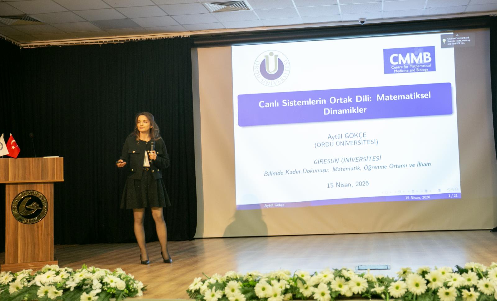 Matematiğin farklı yönlerine ve kadınların bilim dünyasındaki katkılarına ışık tutma perspektifiyle düzenlenen panelde; Ordu Namık Altaş Koleji’nden Burcu Öztürk, “Matematik Öğrenimi İçin Yapılandırılmış Sınıf Ortamları” başlıklı sunumunda etkili öğrenme ortamlarının önemine değindi. Giresun Üniversitesi’nden Prof. Dr. Haşim Çayır ise “Bilim Tarihinde Kadınların Etkisi” konulu konuşmasıyla bilimsel gelişmelerde kadınların rolünü ele aldı. Ordu Üniversitesi’nden Doç. Dr. Aytül Gökçe ise “Canlı Sistemlerin Ortak Dili: Matematiksel Dinamikler” başlıklı sunumuyla matematiğin disiplinler arası gücünü katılımcılarla paylaştı.