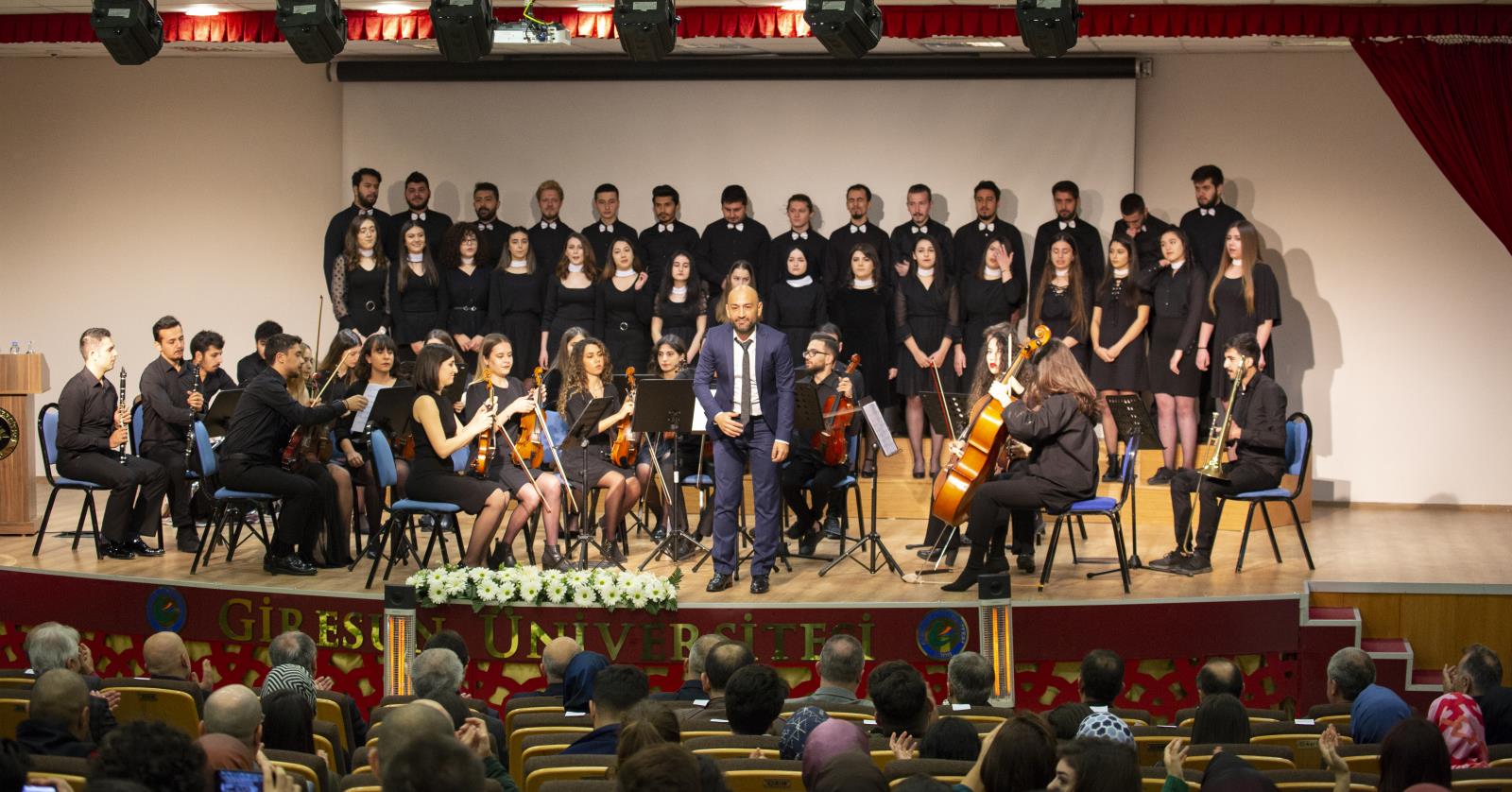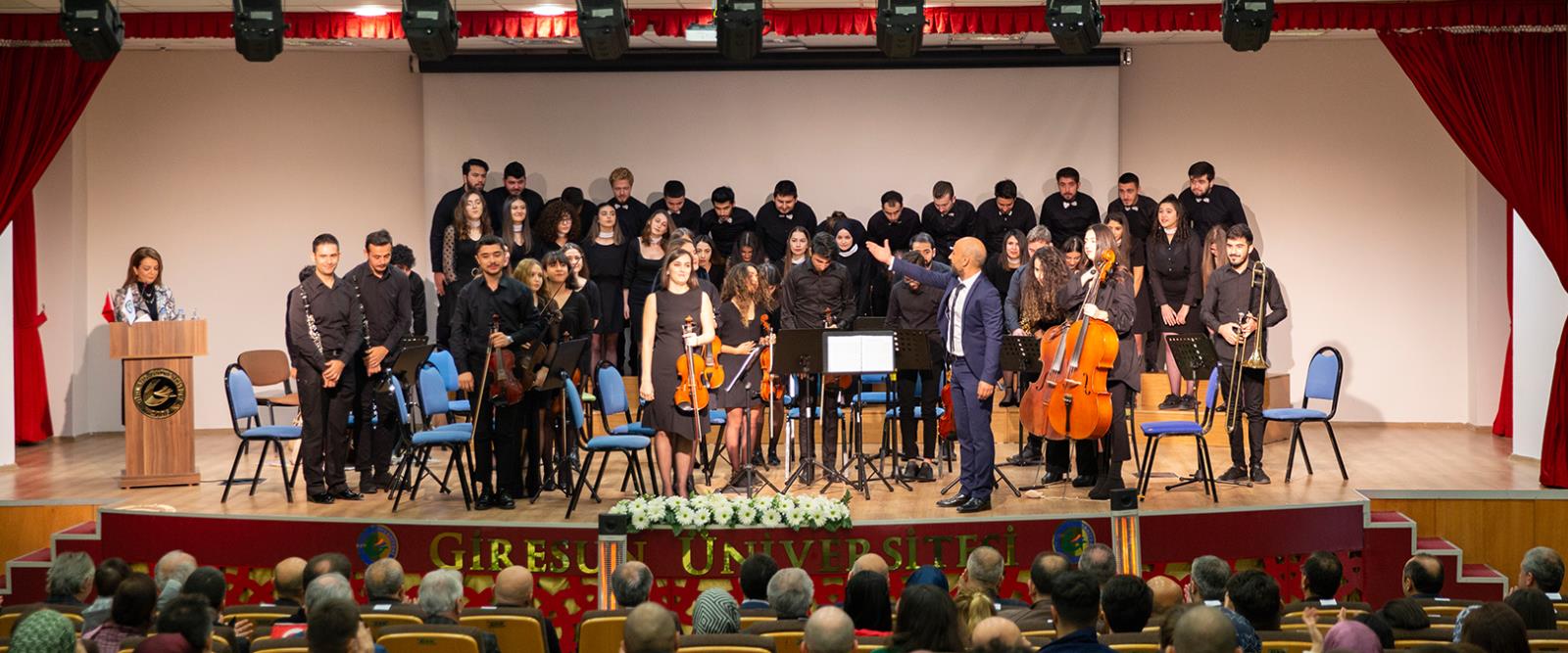 Saygı duruşu ve akabinde Eğitim Fakültesi Müzik Eğitimi Anabilim Dalı akademisyenlerinden Doç. Dr. İzzet Yücetoker’in şefliğinde öğrenci orkestrası ve korosunun İstiklal Marşı’mızı seslendirmesiyle başlayan program, koronun icra ettiği birbirinden güzel eserlerle devam etti.