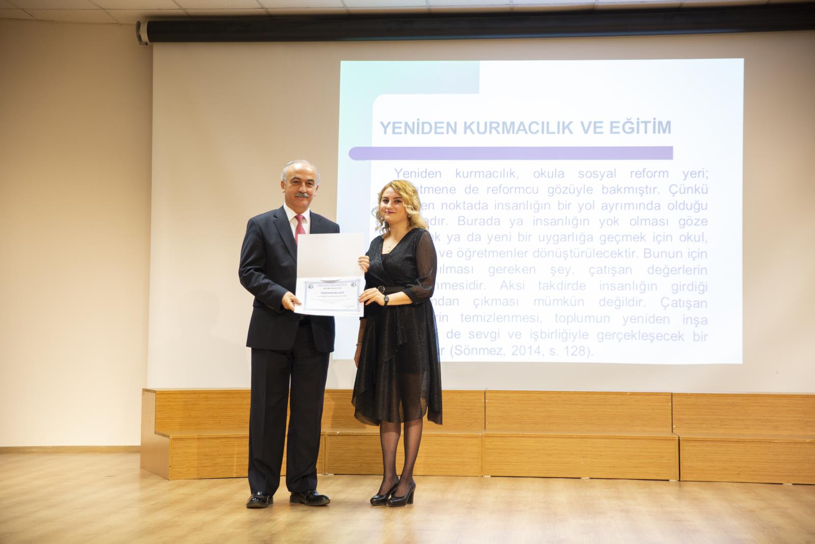 Eğitim nedir, felsefi açıdan eğitim ve eğitim felsefesinde temel sorular gibi başlıklar altında konuşan Sayın Sünney’in ardından, Eğitim Bilimleri Bölümü tarafından hazırlanan “Şehit Öğretmenler ve GRÜ Eğitim Fakültesi Mezunlarından Anılar” adlı kısa film gösterimi gerçekleştirildi.