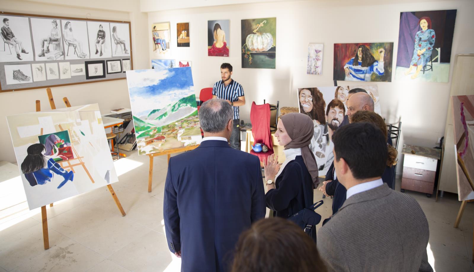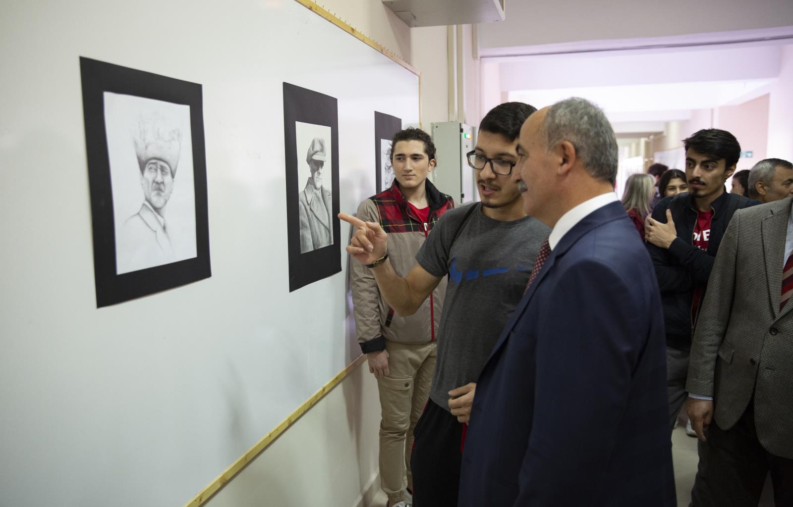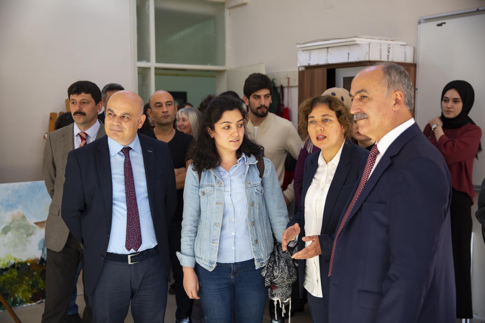 Resim İş Eğitimi bölümünde düzenlenen serginin açılış törenine Rektörümüzün yanı sıra Rektör Yardımcısı ve aynı zamanda Eğitim Fakültesi Dekan Vekili Prof. Dr. Güven Özdem, Dekan Yardımcıları Dr. Öğr. Üyesi Mehmet Alver, Dr. Öğr. Üyesi Gürkan Fırat Saylan, Üniversitemiz akademik ve idari personeli ile öğrenciler katıldı.