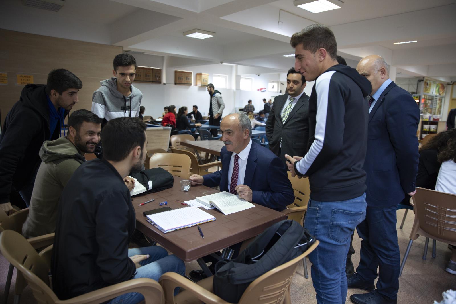 Sergilenen eserleri tek tek inceleyen Rektörümüz, öğrencilerden yaptıkları çalışmalar hakkında bilgi aldı. Serginin ardından Fakültede incelemelerde bulunan Prof. Dr. Yılmaz Can, dersliklerde ve kantinde öğrencilerle bir araya geldi. Kampüs içinde ve dışında yaşadıkları sorunları ve beklentilerini dinleyen Rektörümüz, Üniversite Yönetimi olarak birinci önceliklerinin öğrencilerin daha iyi koşullarda akademik eğitimlerini sürdürmeleri olduğunu belirterek çalışmalarına da bu doğrultuda yön verdiklerini söyledi.