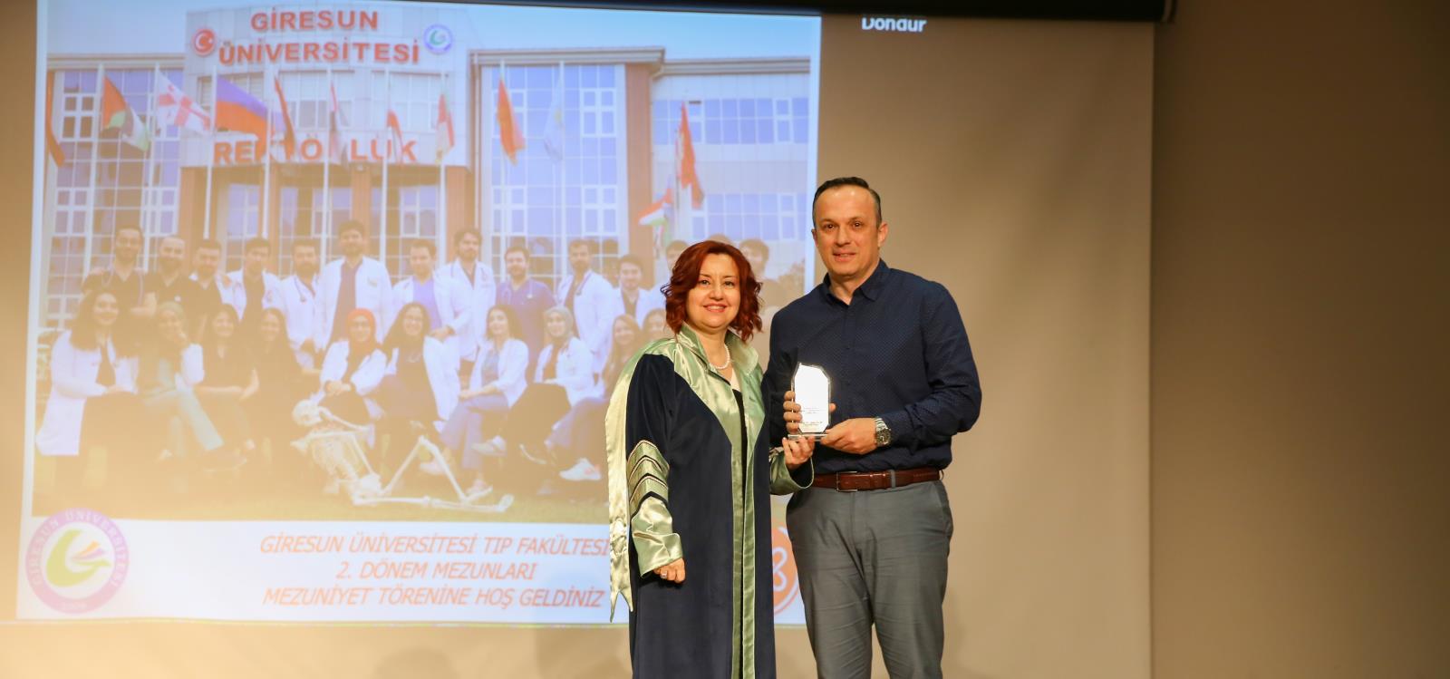 Törende; Giresun Ticaret ve Sanayi Odası Başkanı Hasan Çakırmelikoğlu, Özel Eğitime Muhtaç Çocuklara Yardım Derneği Başkanı Seyhan Kitapçı, Giresun Esnaf ve Sanatkârlar Odası Başkanı Ali Kara, GİSMAP Yönetim Kurulu Başkanı İbrahim Kara adına Suna Sevim Kara, METES Sağlık Ürünleri AŞ adına Yunus Emre Candemir teşekkür plaketlerini Tıp Fakültesi Dekanı Prof. Dr. Canan Çelikten aldılar.