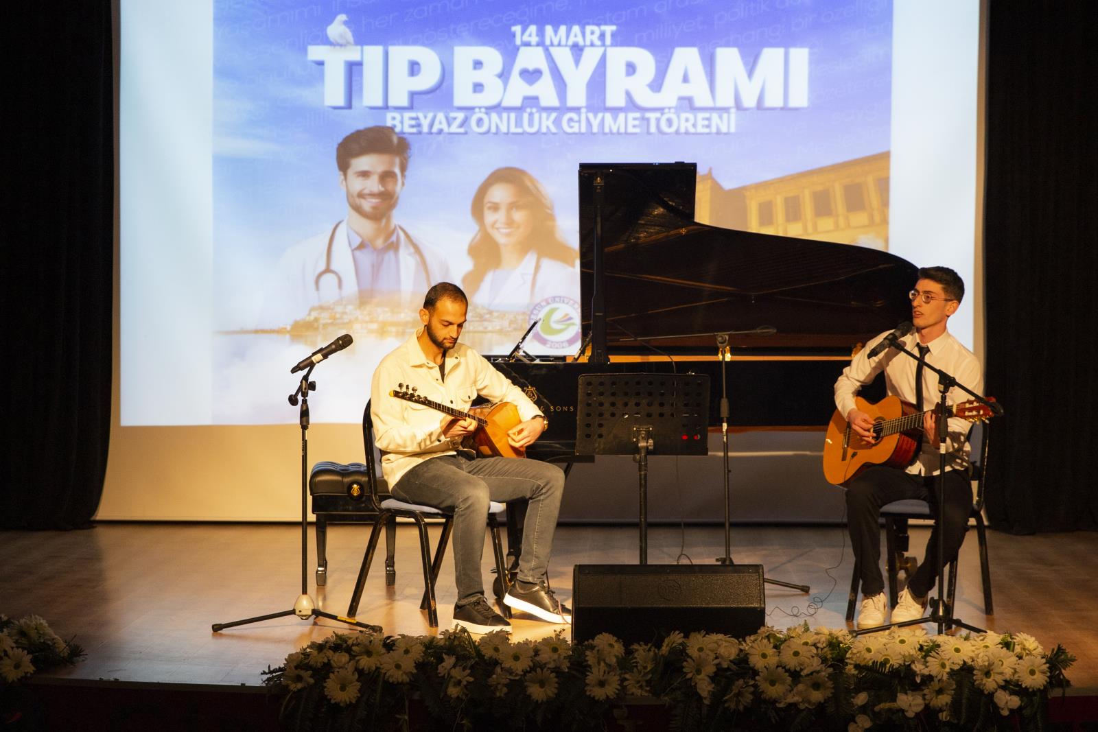 Saygı duruşu ve İstiklal Marşı’mızın okunmasıyla başlayan program, Tıp Fakültesi Beyaz Önlük Müzik Grubunun seslendirdiği eserlerle devam etti.