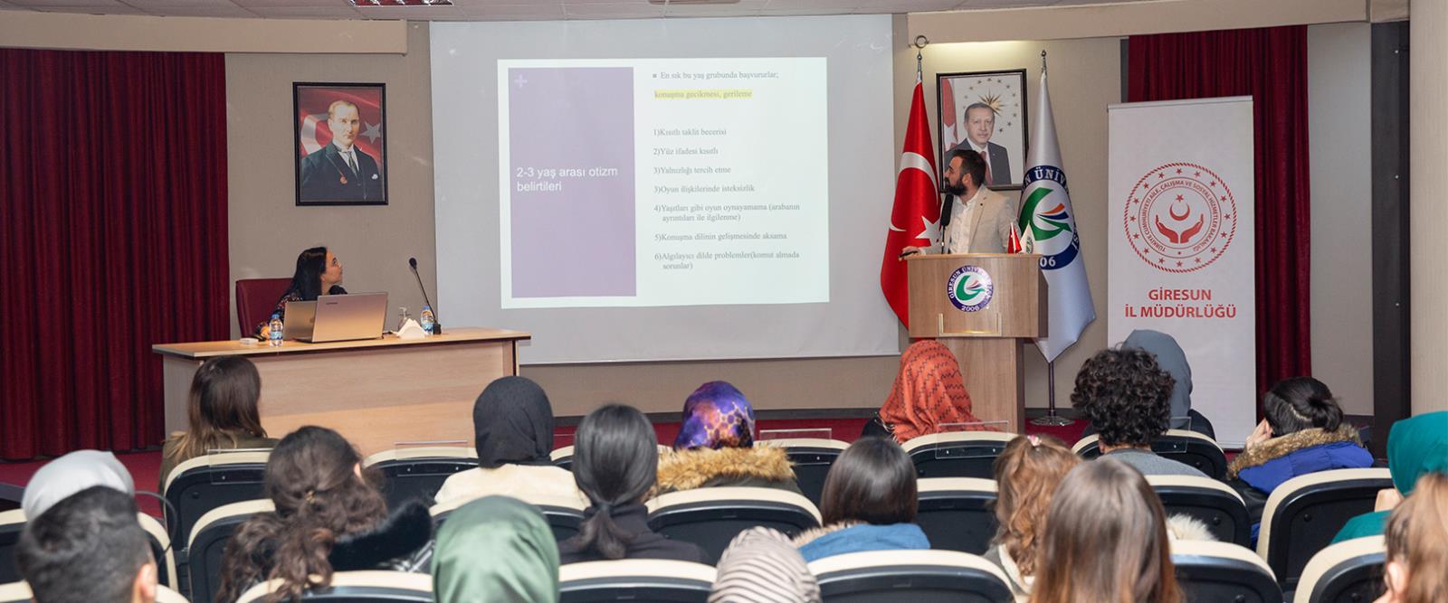 Daha sonra kürsüye çıkan İl Milli Eğitim Müdürlüğü Özel Eğitim Öğretmeni Gülsüm Bacacı, otizm ile ilgili yasal düzenlemeler, eğitim hakkı, özel eğitim hizmetleri yönetmeliği kavramları ve tanılama süreci hakkında bilgi verdi.