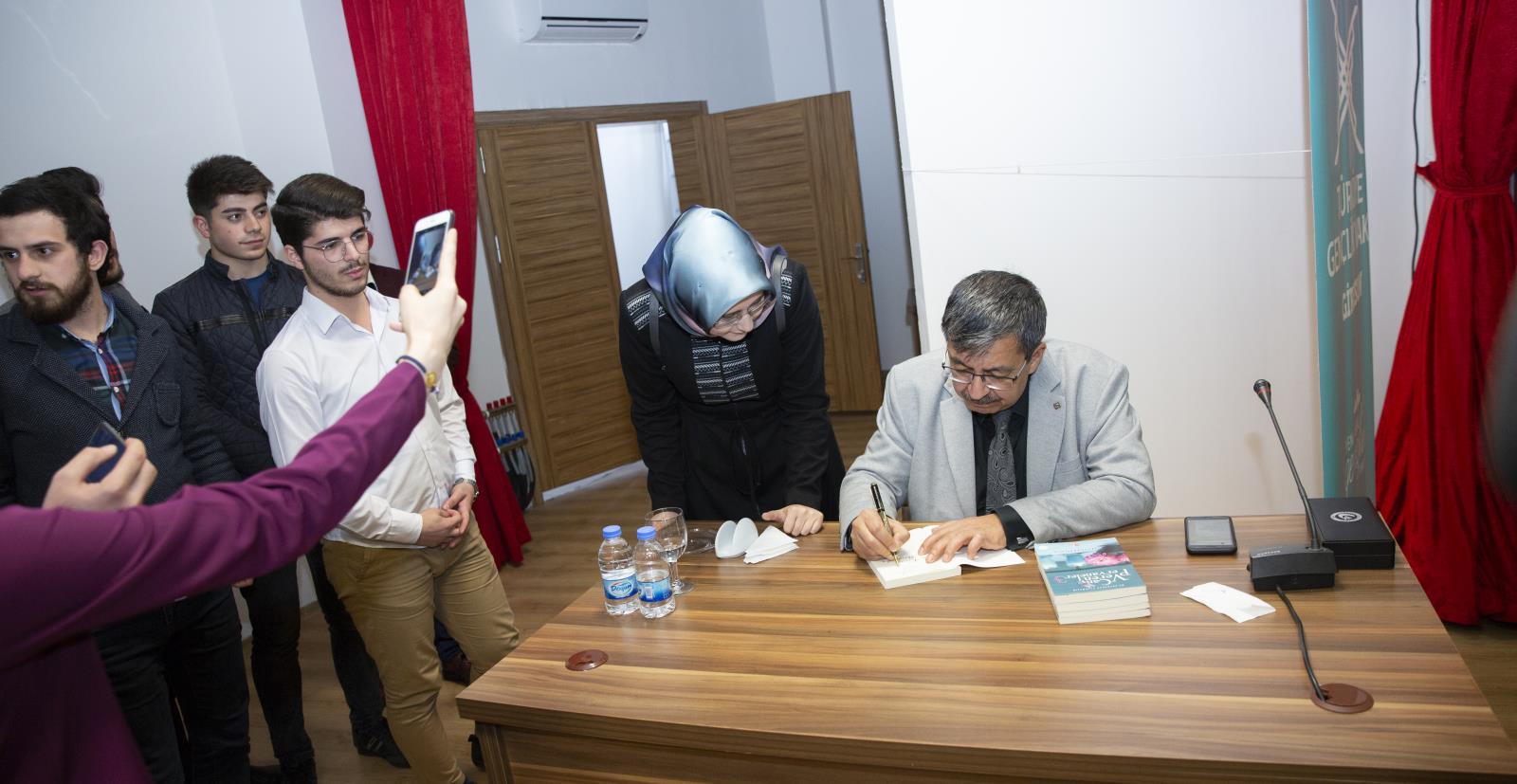 TÜGVA il temsilcisi Muhammed Anıl Kaya’nın program sonunda çeşitli hediyeler takdim ettiği Hayati İnanç, dana sonra Rektörlük Fuaye salonunda hayranları için kitap imzaladı.