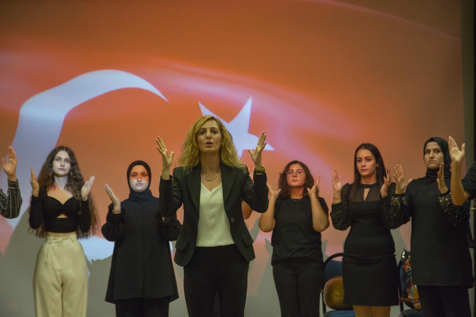 Her yıl 14 Mart Tıp Bayramı’nda düzenlenen ancak bu yıl şubat ayında yaşanan deprem sebebiyle ertelenen beyaz önlük giyme töreni, Tıp Fakültemiz Dekanı Prof. Dr. Erdal Ağar konuşmasıyla başladı. Prof. Dr. Ağar, beyaz önlüğün ne renk ne de giyilen kumaşın özelliğiyle ilgili olmadığını ona yüklenen anlamla ilgili olduğunu vurgulayarak; “Beyaz önlük saflığın, temizliğin, çalışkanlığın, bilgeliğin, hizmet aşkının bir sembolüdür. Bu sebeple beyaz önlük giyme töreni yapıyoruz. Önlüğümüzün rengini değiştirsek bile o bizim için saf, tertemiz bir kıyafet olarak kalacaktır. Çünkü buradan mezun olduğunuzda isimlerinizin başına sadece doktor unvanı almayacaksınız. Bunun yanında insanların umudu olacaksınız. Doktor olmak demek, çocuğunun mürüvvetini görmek için her gün dua eden yaşlı birinin puslu havadaki yıldızı olmak demektir. Doktor olmak demek yoğun bakımda uzun süre yatan birinin tünelin ucunda gördüğü ışık olmak demektir. Dolayısıyla burada alacağınız kesinlikle yalnızca bir unvan ya da diploma değildir. Bu meslek öyle önemlidir ki bir salgın meydana gelir, adını daha yeni duyduğumuz bir virüs ortaya çıkar aynı evin içinde yaşayan insanlar birbiriyle görüşmeye çekinirken hekimlerimiz, hastalığı yenmek için adeta ona meydan okurcasına gece gündüz demeden çalışırlar. Sevgili gençler, bugün beyaz önlüğü sizlere teslim edeceğiz. Bir sorumluluk vereceğiz ve sonra bu sorumluluğu mezun olurken sizlerden geri almayacağız. Dolayısıyla bugün sorumluluğunuz başlıyor. Sizin için büyük gün ve sizlere eğitim öğretim hayatınızda başarılar diliyorum. Bir şeyi unutmayın, sürekli öğrenmek, kendinizi geliştirmek tıp fakültesinin parolası gibidir. Okumayı, yazmayı ve çalışmayı sevmeyen burada başarılı olamaz. Bu zor yolda hepinize başarılar diliyorum.” diyerek sözlerini noktaladı.